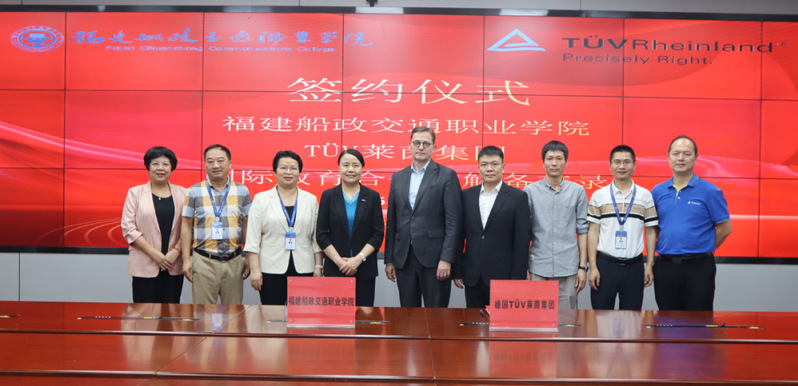 5月9日,學(xué)院同德國TüV 萊茵集團(tuán)在福船園行政樓會(huì)議室舉行國際教育合作諒解備忘錄簽約儀式。TüV萊茵集團(tuán)全球職業(yè)教育總監(jiān)Carlo Humberg ,TüV 萊茵大中華區(qū)職業(yè)教育總經(jīng)理陳俊東,萊茵中檢(福建)技術(shù)有限公司副總經(jīng)理趙東岳、經(jīng)理孫代新,福建船政交通職業(yè)學(xué)院黨委副書記、院長陳群,黨委副書記張輝等校企領(lǐng)導(dǎo)出席活動(dòng)。