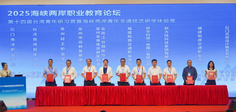 7月15日-17日,2025海峽兩岸職業(yè)教育論壇在福建省福州市成功舉行。此次論壇以“AI賦能職業(yè)教育”為主題,由中華職業(yè)教育社、福建省中華職業(yè)教育社聯(lián)合臺灣多家社會團體共同主辦,福建船政交通職業(yè)學(xué)院承辦,《教育與職業(yè)》雜志社協(xié)辦。論壇涵蓋開幕式、揭牌儀式、項目簽約、學(xué)術(shù)報告、嘉賓對話、文化活動、現(xiàn)場教學(xué)等多項議程,來自兩岸的職業(yè)教育專家、學(xué)者、院校和企業(yè)代表等230余人出席活動。