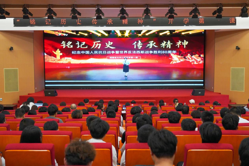 9月6日上午,《“銘記歷史,傳承精神——紀(jì)念中國(guó)人民抗日戰(zhàn)爭(zhēng)暨世界反法西斯戰(zhàn)爭(zhēng)勝利80周年”福建省大中小學(xué)開學(xué)第一課》在福建教育電視臺(tái)、學(xué)習(xí)強(qiáng)國(guó)福建平臺(tái)等播出。我院組織馬克思主義學(xué)院全體教師及各二級(jí)學(xué)院學(xué)生代表集中收看。