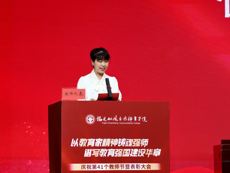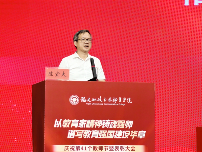9月10日下午,我院舉行慶祝第41個教師節(jié)暨表彰大會。黨委書記陳宜大,黨委副書記、院長陳群,黨委副書記張輝,紀(jì)委書記謝建山,副院長陳常暉出席會議。會議由陳常暉主持。全體教職工、榮退人員代表、福建閩清職業(yè)中專學(xué)校代表、校友代表、學(xué)生代表歡聚一堂,共同參加此次會議。本次慶祝表彰大會采用線下會場和線上直播同步進(jìn)行。
