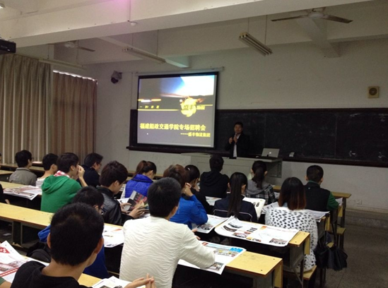 2014年4月23日在福建船政交通職業(yè)學(xué)院經(jīng)管大樓307教室為2014屆畢業(yè)生舉辦一場(chǎng)專場(chǎng)招聘會(huì),由盛豐物流股份有限公司前來對(duì)交通經(jīng)濟(jì)系2014屆各專業(yè)應(yīng)屆畢業(yè)生進(jìn)行招聘。