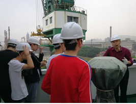 圖11 參觀(guān)機(jī)艙 圖12 觀(guān)看裝卸船作業(yè)
