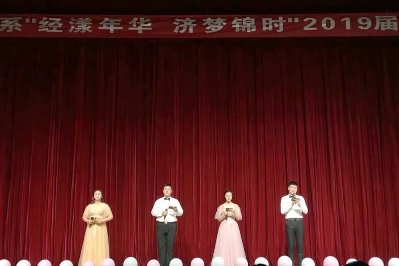 晚會(huì)中還放映了畢業(yè)相片影集和經(jīng)濟(jì)系各領(lǐng)導(dǎo)、輔導(dǎo)員、班主任等畢業(yè)寄語錄像。他們一位接一位傾訴衷腸,每一句話都匯成一種最真切的感情,既是昨日的回憶又是未來的期望。