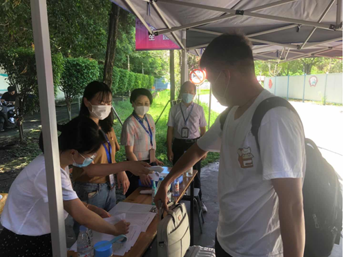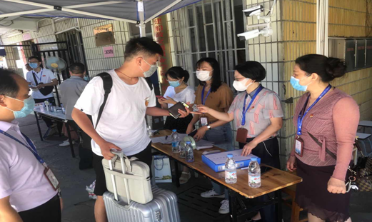 炎炎夏日,交通經(jīng)濟(jì)系全體輔導(dǎo)員老師們與共建支部的老師們輪流參與志愿工作,工作從校門(mén)口就開(kāi)始了。他們一絲不茍地一步步引導(dǎo)每一位返校同學(xué)完成手部消毒、口罩更換、體溫檢測(cè)、健康碼核驗(yàn)等工作,這一切只為每一位同學(xué)的平安。