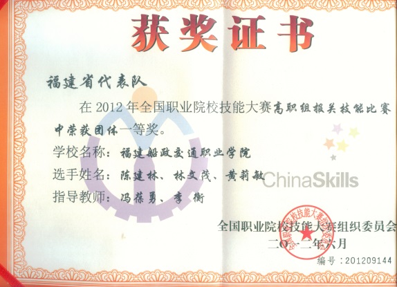 全國(guó)高職院校技能大賽報(bào)關(guān)技能賽項(xiàng)國(guó)賽一等獎(jiǎng)
