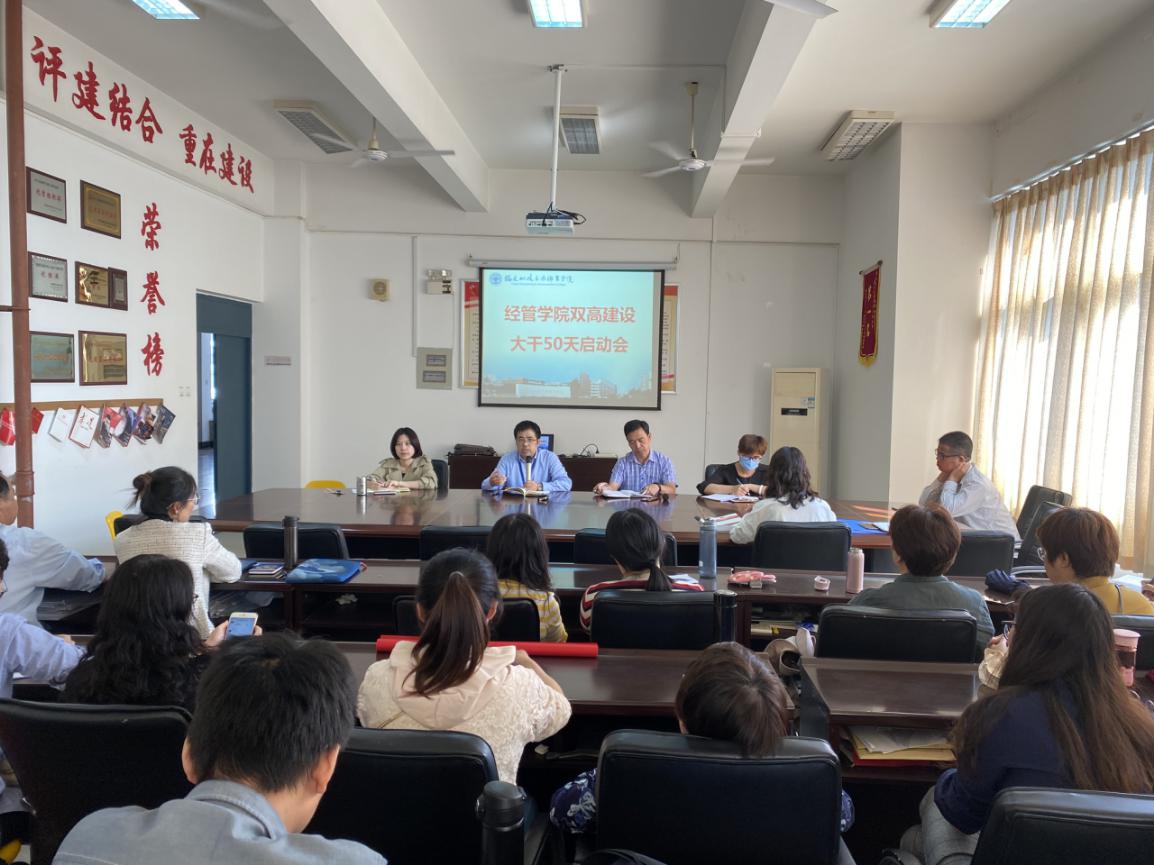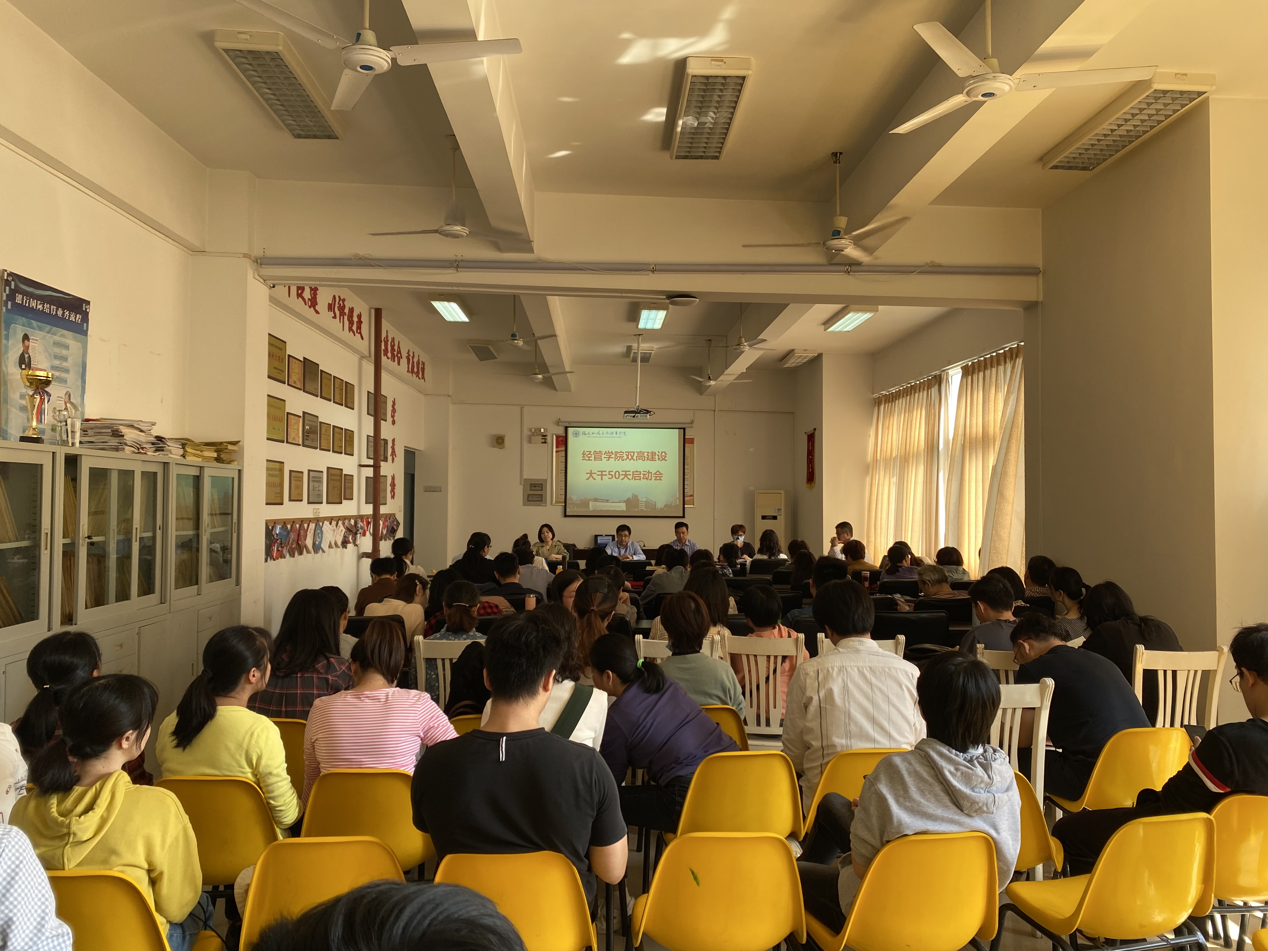 為加快推進(jìn)我院高水平高職院校和高水平專業(yè)建設(shè)工作,確保各雙高項(xiàng)目有效、快速、高質(zhì)量完成,10月28日下午,我院在經(jīng)管樓605會(huì)議室召開了“經(jīng)濟(jì)與管理學(xué)院雙高建設(shè)大干50天啟動(dòng)會(huì)”。經(jīng)管學(xué)院全體教職工參會(huì),會(huì)議由房曰榮院長(zhǎng)主持。