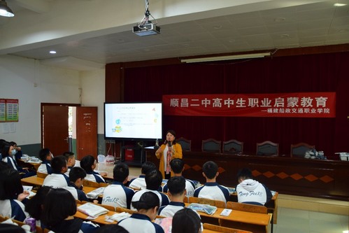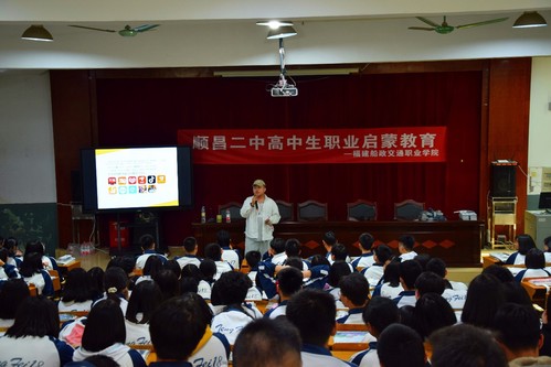 為深入貫徹落實(shí)《國(guó)家職業(yè)教育改革實(shí)施方案》,加強(qiáng)中小學(xué)生職業(yè)啟蒙教育,完成新時(shí)代賦予教育的歷史使命,充分發(fā)揮福建船政交通職業(yè)學(xué)院國(guó)家“雙高計(jì)劃”建設(shè)單位的優(yōu)勢(shì)、職業(yè)教育資源優(yōu)勢(shì)以及現(xiàn)代職教文化特色,11月2日,福建船政交通職業(yè)學(xué)院經(jīng)濟(jì)與管理學(xué)院副院長(zhǎng)林穎、市場(chǎng)營(yíng)銷教研室主任陳華、電子商務(wù)教研室主任陳樂(lè)天、市場(chǎng)營(yíng)銷專業(yè)教師湯曉玲一行赴南平市順昌二中開(kāi)展職業(yè)啟蒙教育活動(dòng),并為同學(xué)們帶來(lái)了豐富的宣傳物資及學(xué)院精美的文創(chuàng)禮品。
