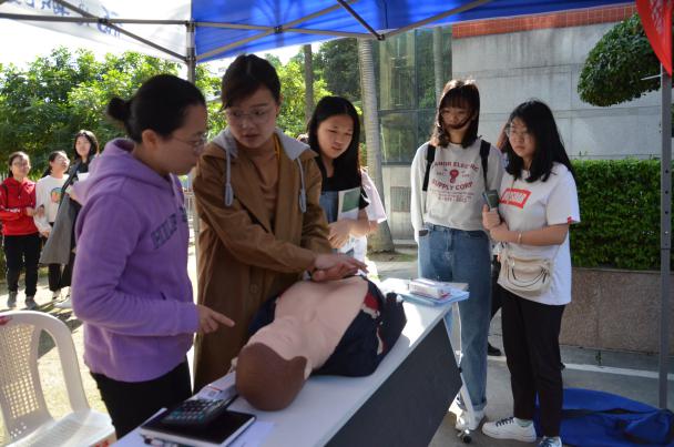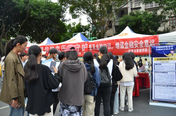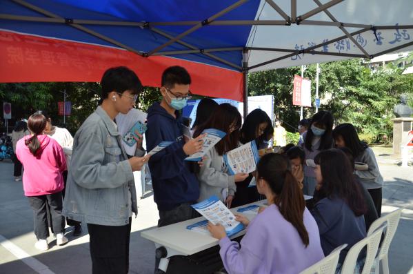 活動(dòng)現(xiàn)場(chǎng),老師和志愿者們通過分發(fā)金融知識(shí)宣傳單和手把手教學(xué)的形式,為來往的同學(xué)介紹普及日常生產(chǎn)生活所必要的金融基礎(chǔ)知識(shí)、禮儀知識(shí)、急救知識(shí),同學(xué)們或在宣傳板前駐足觀看,或向志愿者咨詢問題,現(xiàn)場(chǎng)科普氛圍濃烈。