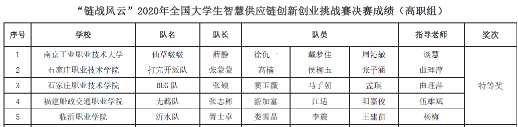 11月28日,2020年“鏈戰(zhàn)風(fēng)云”全國(guó)大學(xué)生智慧供應(yīng)鏈創(chuàng)新創(chuàng)業(yè)挑戰(zhàn)賽總決賽圓滿結(jié)束。大賽由中國(guó)商業(yè)經(jīng)濟(jì)學(xué)會(huì)主辦,采取網(wǎng)絡(luò)競(jìng)賽的方式進(jìn)行。本屆大賽共有來(lái)自全國(guó)28個(gè)省市、自治區(qū)、直轄市446所院校820支隊(duì)伍報(bào)名參賽,其中本科組合計(jì)290所院校595支隊(duì)伍、高職組合計(jì)156所院校225支隊(duì)伍。經(jīng)初賽選拔出的高職組和本科組各50支隊(duì)伍進(jìn)入全國(guó)總決賽。
