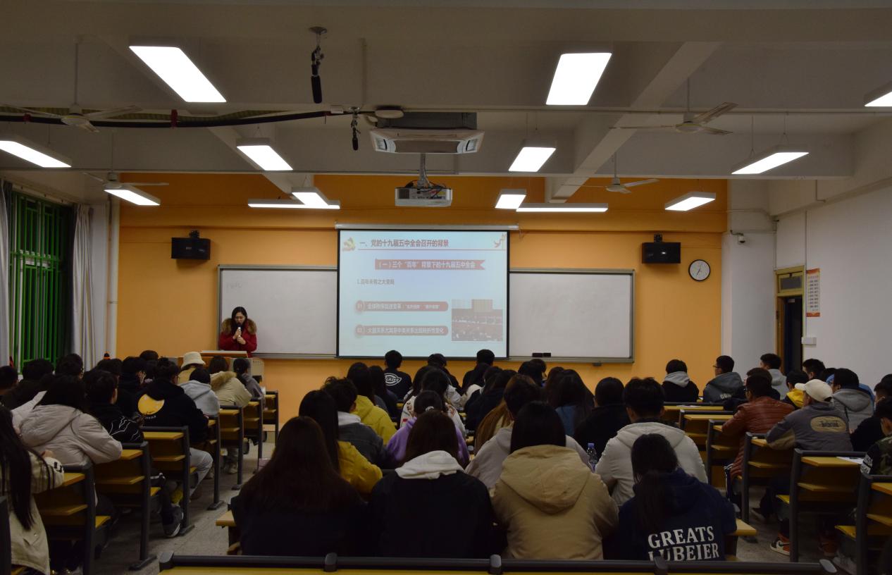 2020年12月17日至18日,我院有幸邀請(qǐng)到馬克思主義學(xué)院的欒靜老師、徐水群老師、張玉祥老師以及我院的輔導(dǎo)員蔡晨薇老師、游鏡瑩老師為我院廣大學(xué)生進(jìn)行十九屆五中全會(huì)精神宣講。
