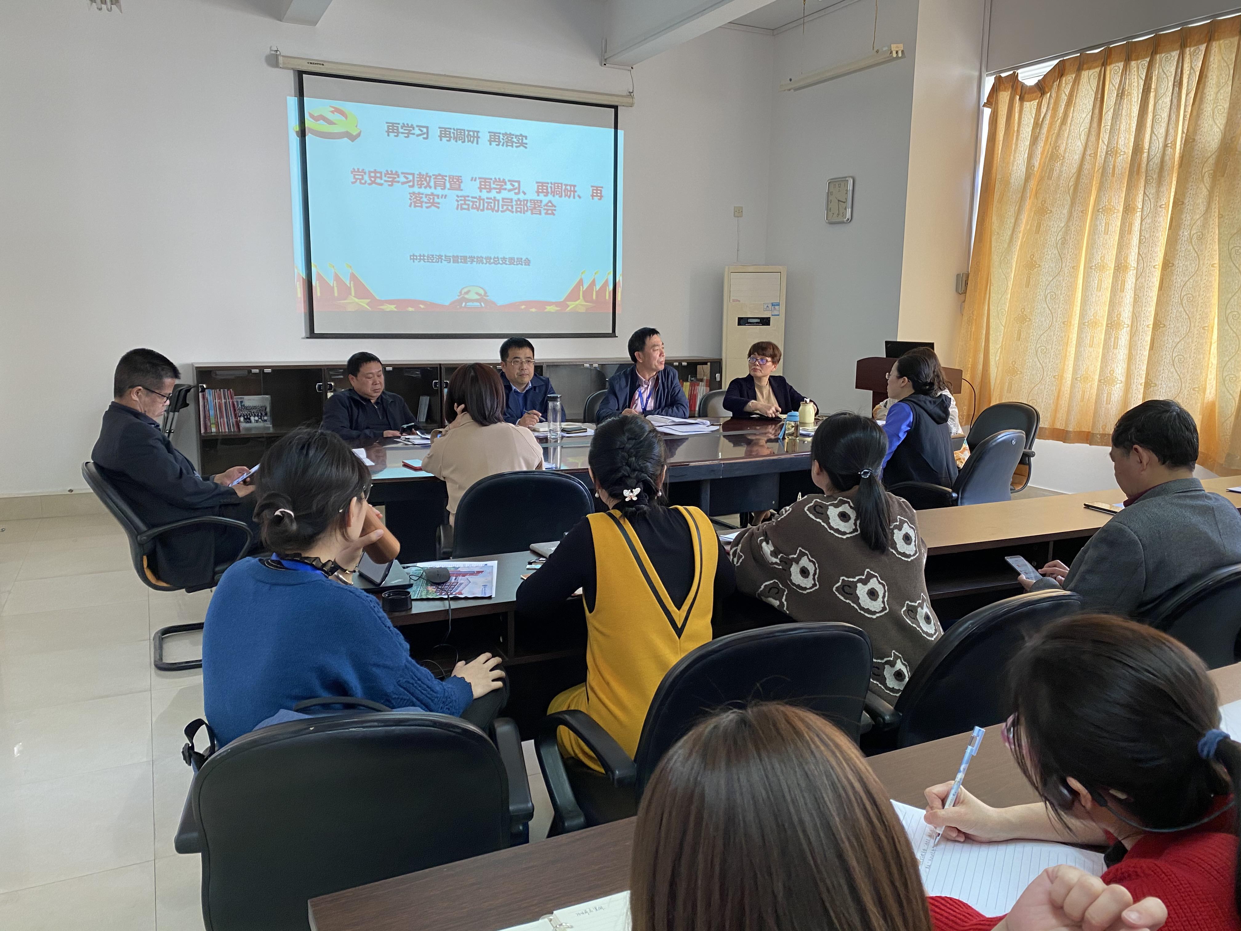 3月15日,為深入學習貫徹習近平總書記重要講話精神、黨中央決策部署和省委、學校工作要求,經(jīng)濟與管理學院黨總支召開黨史學習教育暨“再學習、再調研、再落實”活動動員部署會。對學院各支部開展黨史學習教育和“再學習、再調研、再落實”進行動員部署。經(jīng)管學院黨總支委員、各支部委員、教研室主任參加會議。黨總支書記俞素平主持會議并講話。