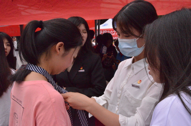過去不知道如何挑選佩戴領(lǐng)帶的同學(xué),經(jīng)志愿者親自示范教學(xué),很快學(xué)會(huì)了搭正裝系領(lǐng)帶。在志愿者的指導(dǎo)下,同學(xué)們對社交禮儀、形象禮儀、職業(yè)禮儀等有了較為全面的了解,更加懂得以良好的禮儀表達(dá)自己,尊重他人。