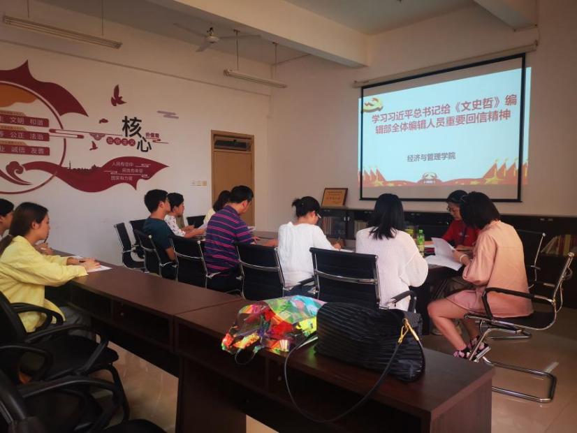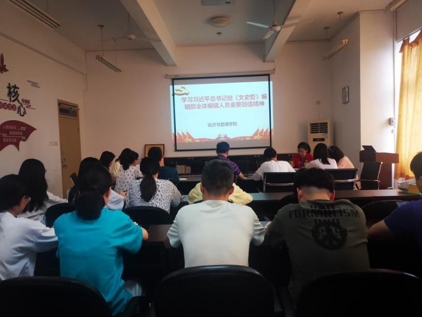 為了深刻領(lǐng)會學(xué)習(xí)習(xí)近平總書記重要回話精神,將教育的重要論述與黨史學(xué)習(xí)教育結(jié)合起來,推進理論創(chuàng)新,培養(yǎng)我院師生銳意進取的處事態(tài)度。經(jīng)濟與管理學(xué)院組織全體師生于6月10日展開深入學(xué)習(xí)貫徹習(xí)近平總書記給《文史哲》編輯部全體人員重要回信精神。
