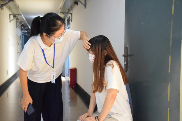 學(xué)生在宿舍身體不適,班長及時(shí)聯(lián)系輔導(dǎo)員,輔導(dǎo)員第一時(shí)間趕到現(xiàn)場確認(rèn)學(xué)生體溫情況,并聯(lián)系醫(yī)務(wù)室,送學(xué)生到醫(yī)務(wù)室進(jìn)一步觀察。