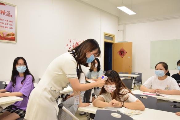 在上課期間,學(xué)生教室突發(fā)發(fā)熱者,老師立即帶好口罩檢測體溫,確定情況異常后,立即聯(lián)系輔導(dǎo)員說明具體情況,輔導(dǎo)員第一時(shí)間到達(dá)現(xiàn)場,并及時(shí)向?qū)W院黨總支副書記林麗萍報(bào)告,確認(rèn)情況后書記聯(lián)系醫(yī)務(wù)室,送學(xué)生到醫(yī)務(wù)室進(jìn)一步觀察。最后向后勤管理處報(bào)備,準(zhǔn)備進(jìn)行消殺工作。