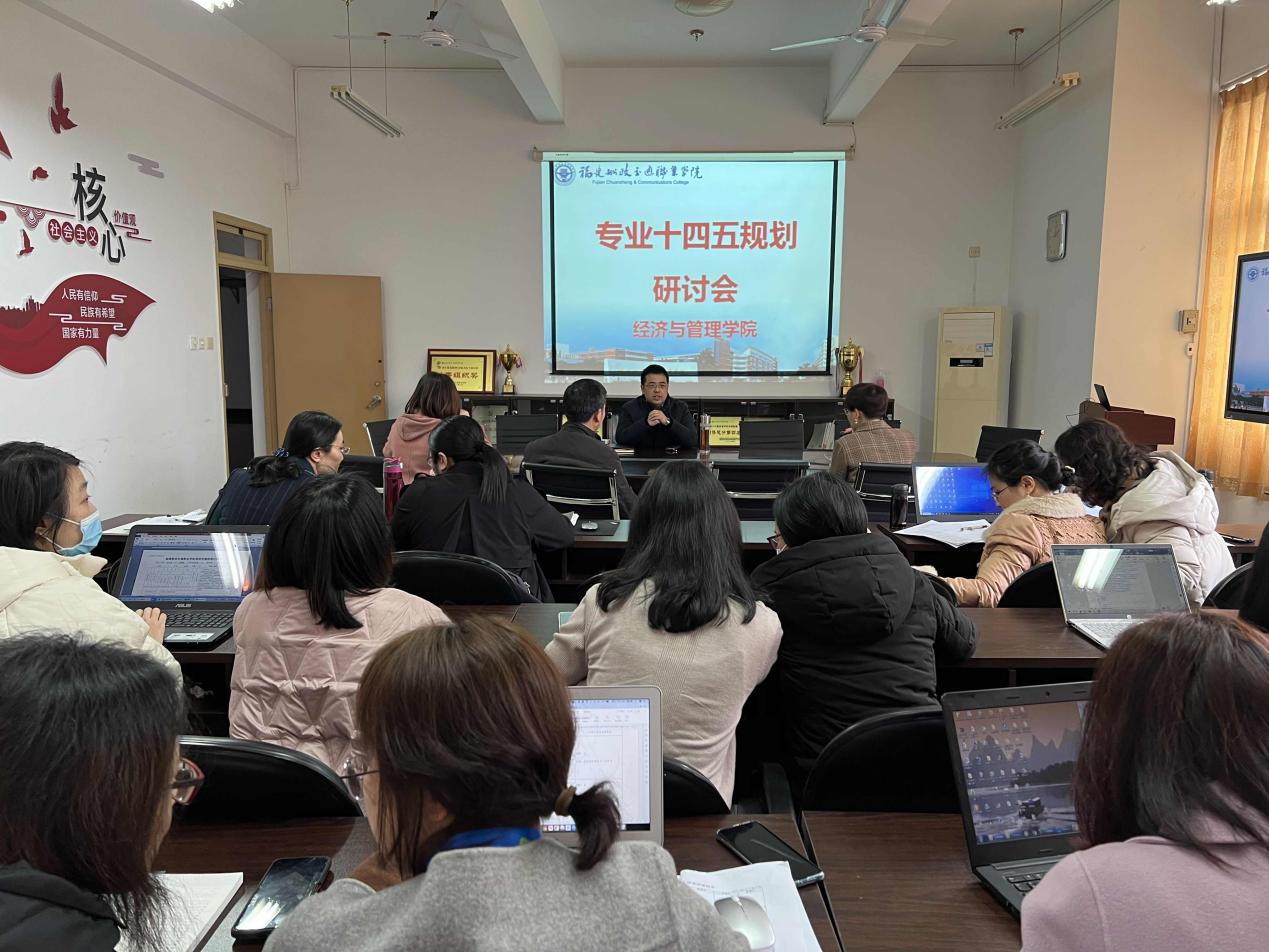 為提高學(xué)院專業(yè)建設(shè)水平,進(jìn)一步完善學(xué)院“十四五”專業(yè)建設(shè)發(fā)展規(guī)劃,2022年2月16日下午,經(jīng)濟(jì)與管理學(xué)院在南區(qū)412會議室召開“十四五”專業(yè)建設(shè)研討會,學(xué)院領(lǐng)導(dǎo)、各教研室主任、專業(yè)帶頭人和骨干教師參加會議,會議由房曰榮院長主持。