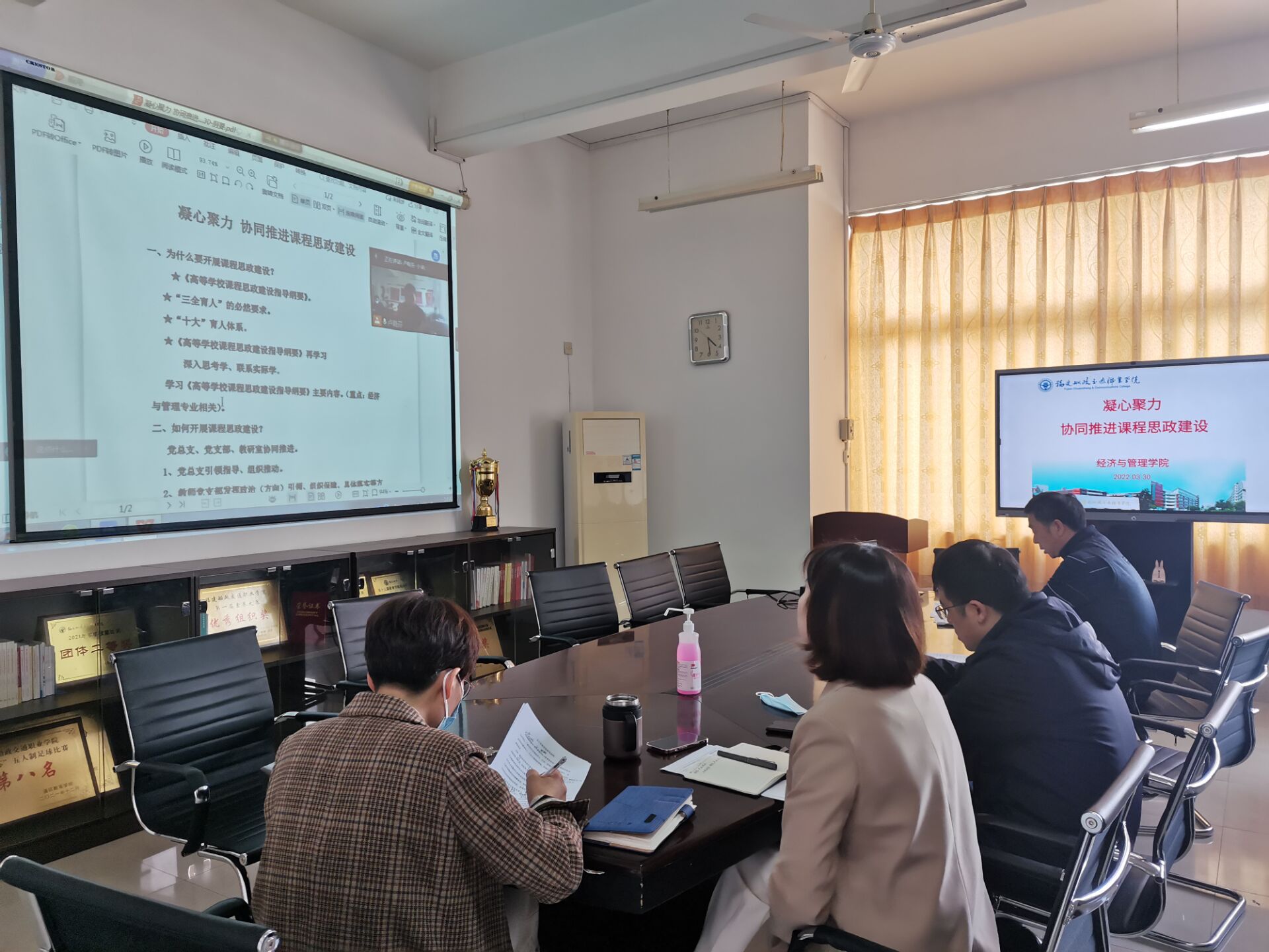 3月30日,經(jīng)濟(jì)與管理學(xué)院召開2022年課程思政建設(shè)工作會(huì)議。學(xué)院領(lǐng)導(dǎo)、各教研室主任、專業(yè)帶頭人、骨干教師、全體輔導(dǎo)員、各支部書記副書記、綜辦在線上和線下出席會(huì)議。會(huì)議由副院長(zhǎng)林穎主持。