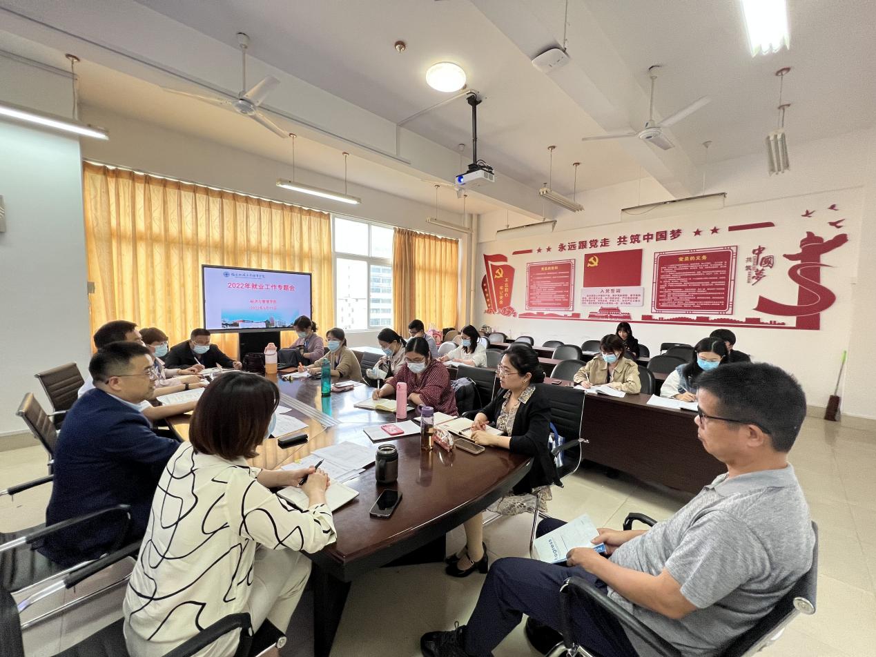為深入貫徹落實學校2022年就業(yè)工作推進會精神,我院于5月11日召開2022年就業(yè)工作專題會,再動員、再部署新一階段的畢業(yè)生就業(yè)工作。院領(lǐng)導、各教研室主任、畢業(yè)班輔導員等參加了會議。