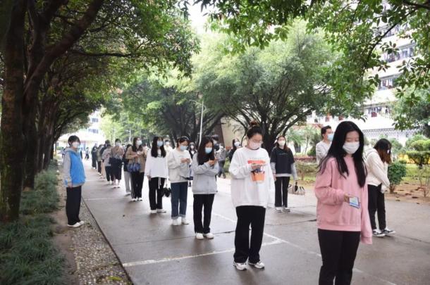 忠于職守,筑牢疫情防控網(wǎng)絡(luò)。面對(duì)疫情的突如其來(lái),學(xué)校組織全員核酸檢測(cè),經(jīng)濟(jì)與管理學(xué)院青年突擊隊(duì)積極有效配合核酸檢測(cè)順利完成,沖在抗疫第一線?!罢?qǐng)大家佩戴好口罩,有序排隊(duì)!”“請(qǐng)大家不要急,這邊排隊(duì)?!敝驹刚邆円?guī)范的禮貌用語(yǔ)和引導(dǎo)手勢(shì),保障了現(xiàn)場(chǎng)檢測(cè)秩序井然,贏得了醫(yī)護(hù)工作人員和廣大受檢師生的一致好評(píng)。