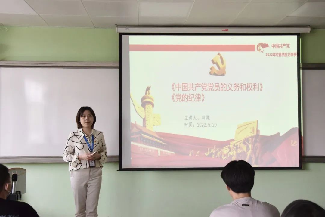 經(jīng)濟(jì)與管理學(xué)院副院長(zhǎng)林穎從“中國(guó)共產(chǎn)黨黨員的義務(wù)和權(quán)利”、黨的紀(jì)律兩方面講解,林穎院長(zhǎng)強(qiáng)調(diào)作為當(dāng)代大學(xué)生應(yīng)始終踐行肯吃苦樂(lè)奉獻(xiàn)的精神,要做到在思想上始終保持一份清醒,在行動(dòng)上始終恪守一份理智,以平和之心對(duì)待名,以淡泊之心對(duì)待位,以知足之心對(duì)待利,以公正之心對(duì)待權(quán),以進(jìn)取之心對(duì)待事。