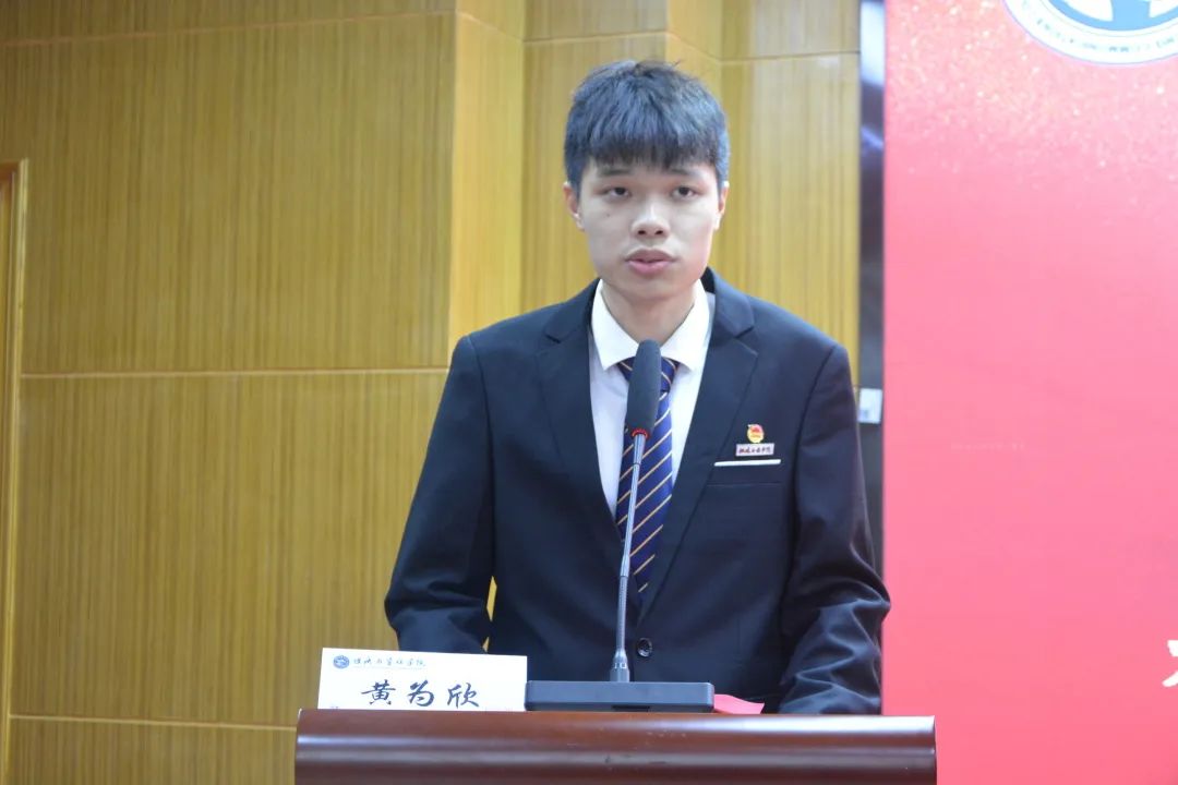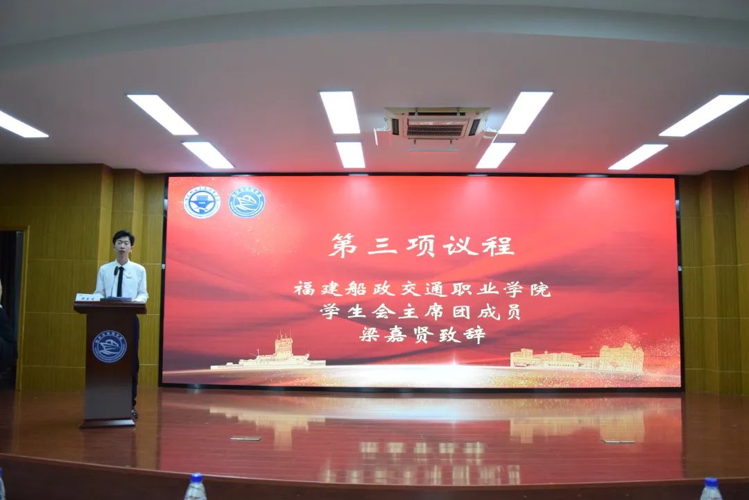 福建船政交通職業(yè)學(xué)院學(xué)生會(huì)主席團(tuán)成員梁嘉賢同學(xué)致詞