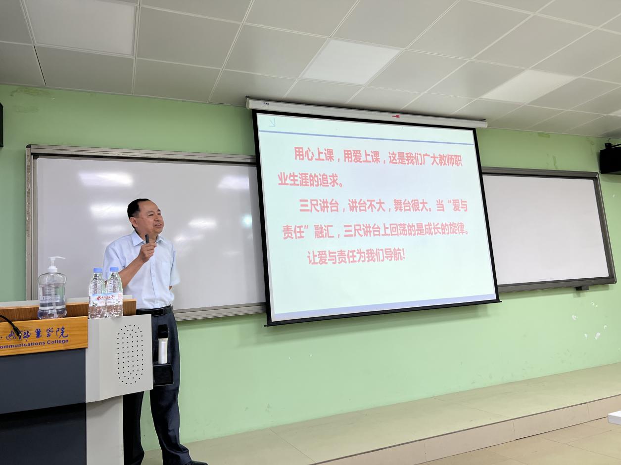 陳宏教授與全體教師們分享了自己多年的教學(xué)經(jīng)歷,從“好老師的標(biāo)準(zhǔn)”、“愛是教育的靈魂”、“教育就是鼓勵(lì),教育就是肯定”、“什么是教師的愛”、“教師是學(xué)生行動(dòng)的標(biāo)桿,德高為師,身正為范”等角度展開,闡述了師德師風(fēng)建設(shè)的重要性、師德師風(fēng)建設(shè)的主要內(nèi)容以及如何進(jìn)行師德師風(fēng)建設(shè)。他表示,教師對學(xué)生的影響是無可替代的,應(yīng)當(dāng)用人格魅力征服學(xué)生,奉獻(xiàn)愛心,在實(shí)踐中不斷提高自己,讓教學(xué)更具魅力。講座讓全體教師受益匪淺,觸動(dòng)很深。陳宏教授勉勵(lì)全體教師要恪守職業(yè)道德,規(guī)范從教行為,增強(qiáng)自身的責(zé)任感和使命感,做新時(shí)代“四有”好老師。