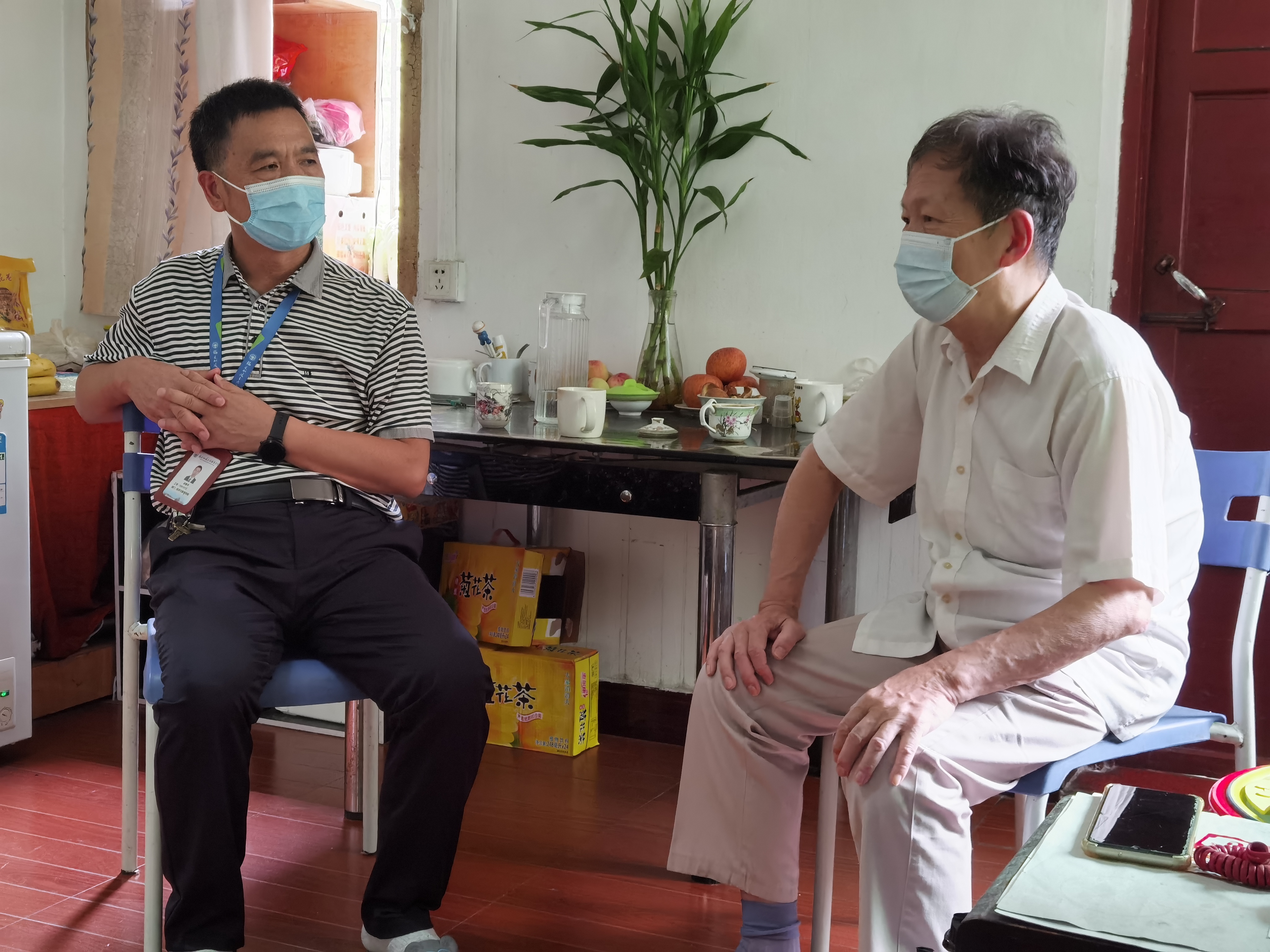 王迎平老同志的家中,俞素平書記、林麗萍副書記詳細(xì)詢問了老同志的身體健康狀況和家庭生活情況,介紹了學(xué)院目前的發(fā)展和建設(shè)情況,耐心傾聽老黨員對學(xué)院工作的意見和建議,希望老同志退休不褪色,離崗不離職,繼續(xù)關(guān)注學(xué)院的發(fā)展,對學(xué)院未來發(fā)展多提寶貴意見和建議。