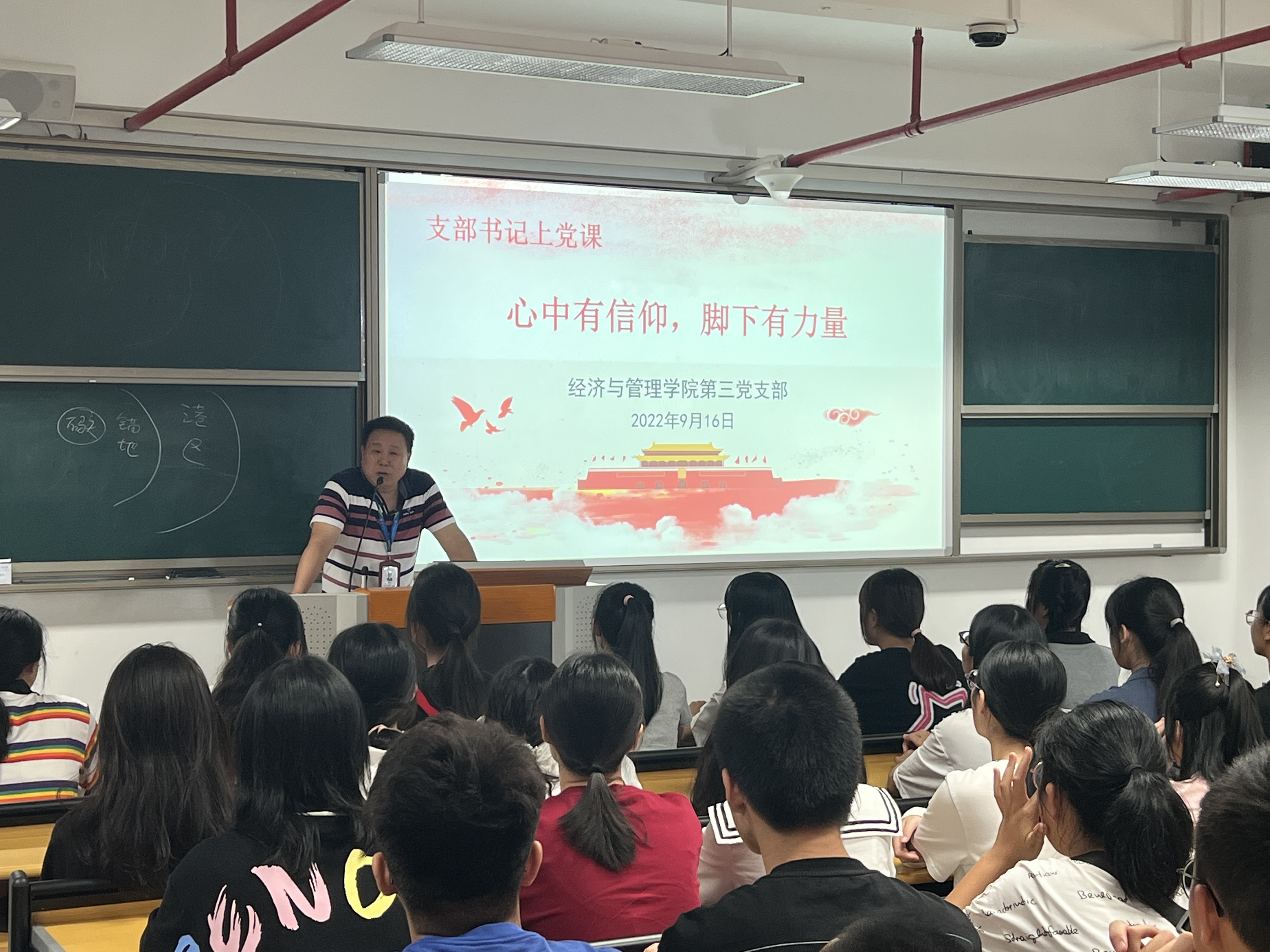 新生入學教育期間,經(jīng)濟與管理學院新生輔導員們?yōu)?/span>2022級新生開展了“使命在肩 黨在我心”主題班會。通過黨史學習教育,引導2022級新生更深入了解黨的光輝歷程,以史為鏡、以史明志,積極向黨組織靠攏。