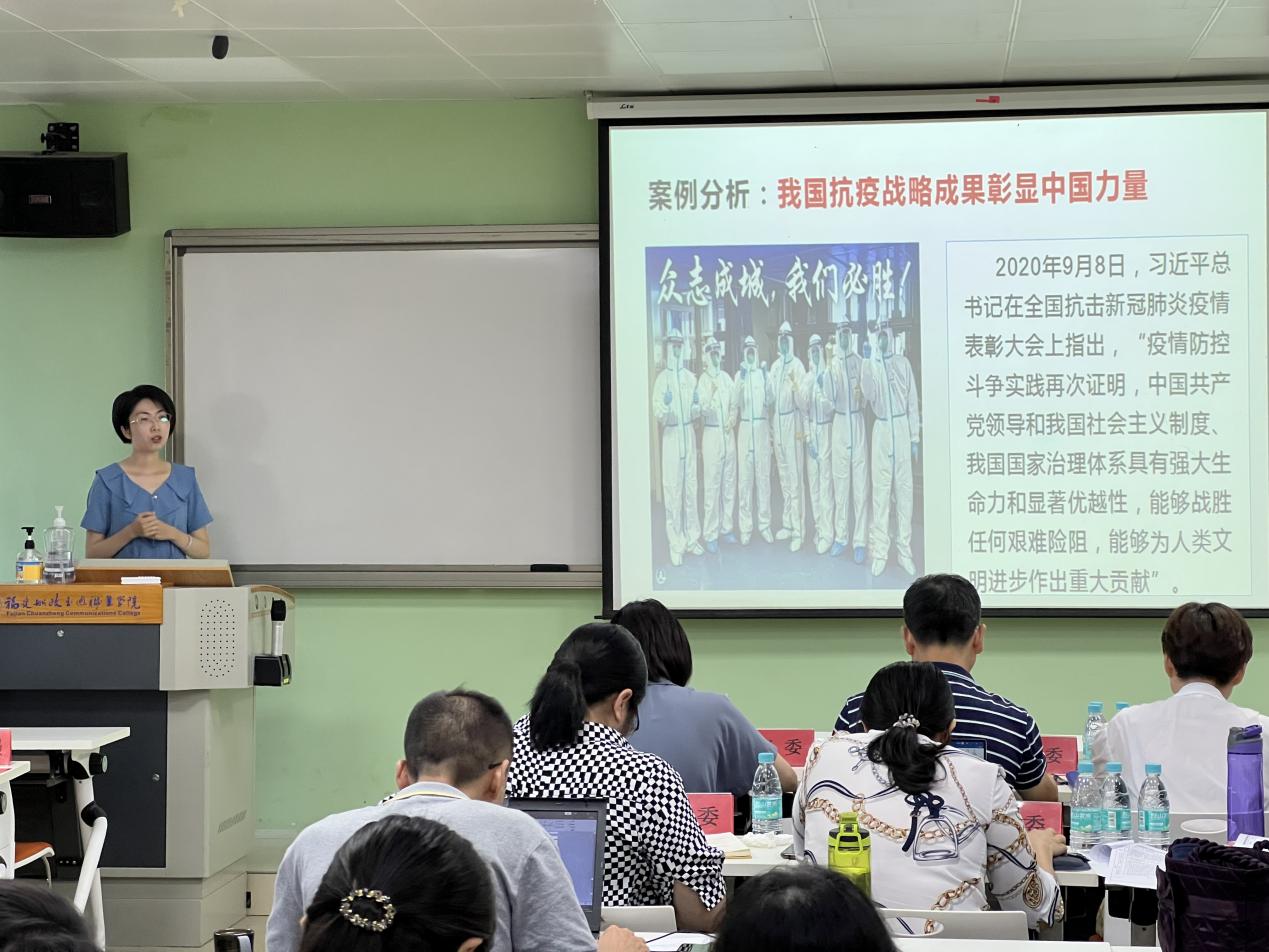 黨總支書記俞素平教授強(qiáng)調(diào)了要提高對課程思政的認(rèn)識,明確教師教書育人的雙重職責(zé),要從價值引領(lǐng)、知識傳授和能力培養(yǎng)三個方面培養(yǎng)學(xué)生。通過挖掘思政元素、做好教學(xué)設(shè)計和課堂實施不斷提高課程思政教學(xué)水平。要讓育人者先受教育,提高教師政治素養(yǎng),從而真正落實立德樹人。
