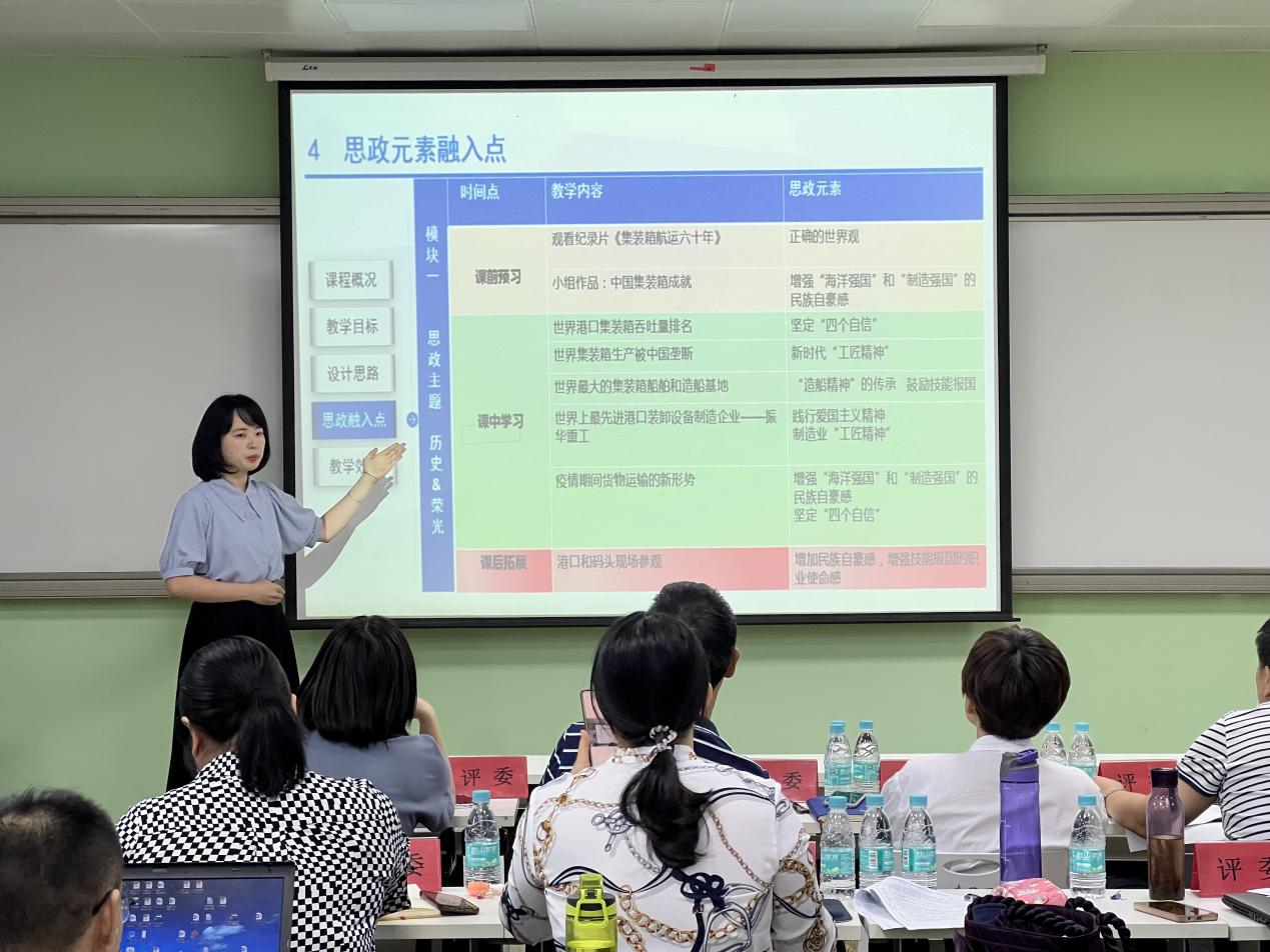 本次大賽分為說課和片段教學(xué)演示兩部分,比賽中,各參賽教師結(jié)合自己的專業(yè)特色,深入挖掘?qū)I(yè)課程中蘊(yùn)含的思政元素,把思想政治教育有機(jī)地融入到課堂教學(xué)中,既展示了各具特色的教學(xué)風(fēng)采,又春風(fēng)化雨、潤物無聲地滌蕩了學(xué)生心靈。比賽精彩紛呈,參賽教師全身心投入,一個個精彩的瞬間博得了陣陣掌聲。經(jīng)過激烈的角逐,最終關(guān)務(wù)與外貿(mào)服務(wù)專業(yè)陳宇老師以科學(xué)嚴(yán)謹(jǐn)?shù)慕虒W(xué)設(shè)計,潤物無聲的思政融入,自然流暢的片段教學(xué)展示,贏得了評委和老師們的一致好評,榮獲2022年課程思政教學(xué)能力比賽一等獎(具體獲獎名單附后)。