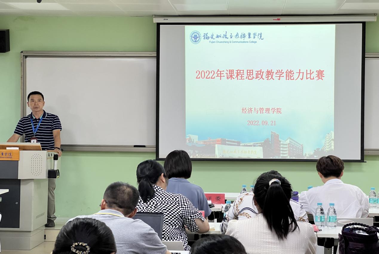為落實立德樹人根本任務(wù),高質(zhì)量推進(jìn)以“課程思政”為目標(biāo)的課堂教學(xué)改革,使專業(yè)課程與思想政治理論課同向而行,經(jīng)濟(jì)與管理學(xué)院于2022年9月21日舉辦2022年課程思政教學(xué)能力比賽。院領(lǐng)導(dǎo)、各教研室主任、專業(yè)帶頭人及骨干教師等參加了此次比賽。
