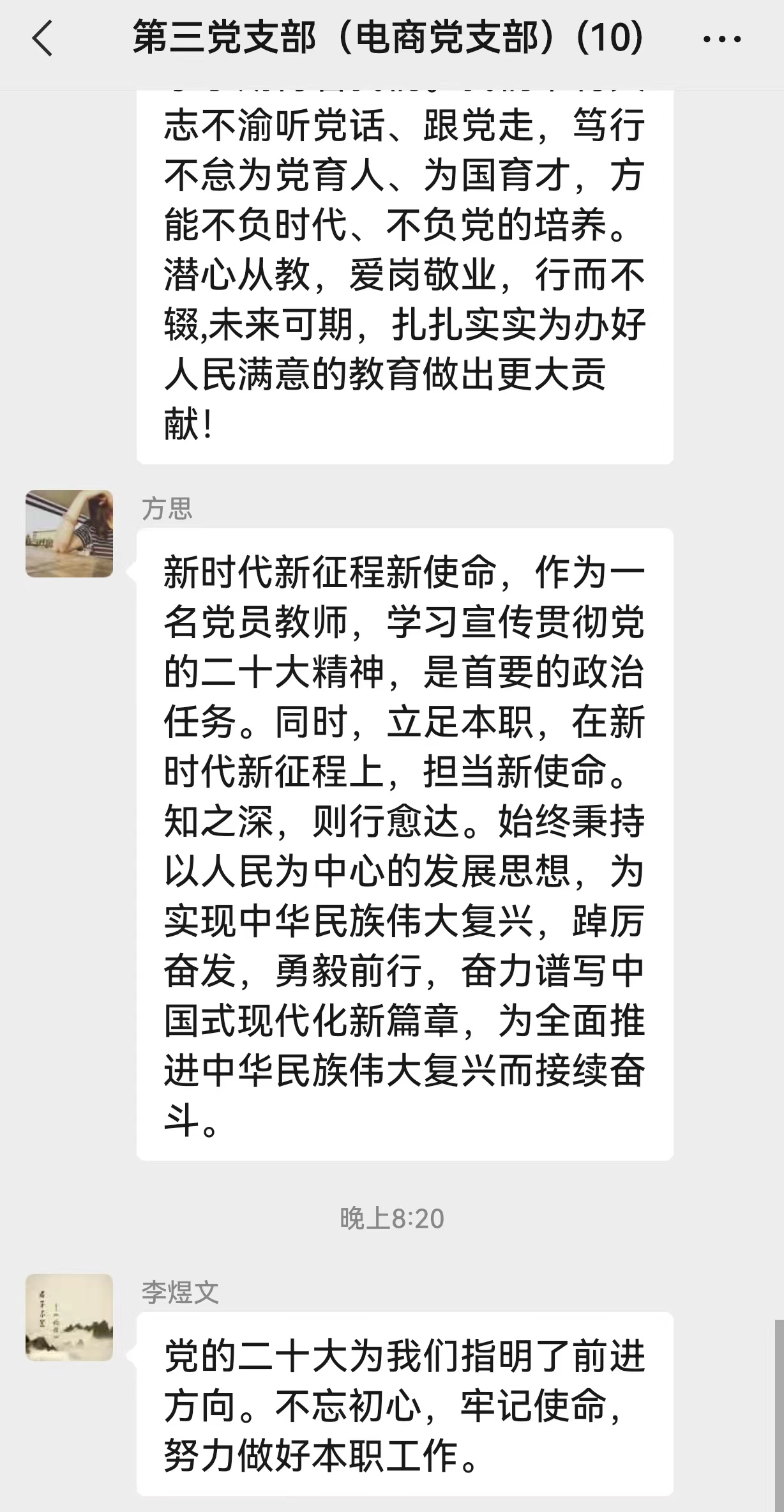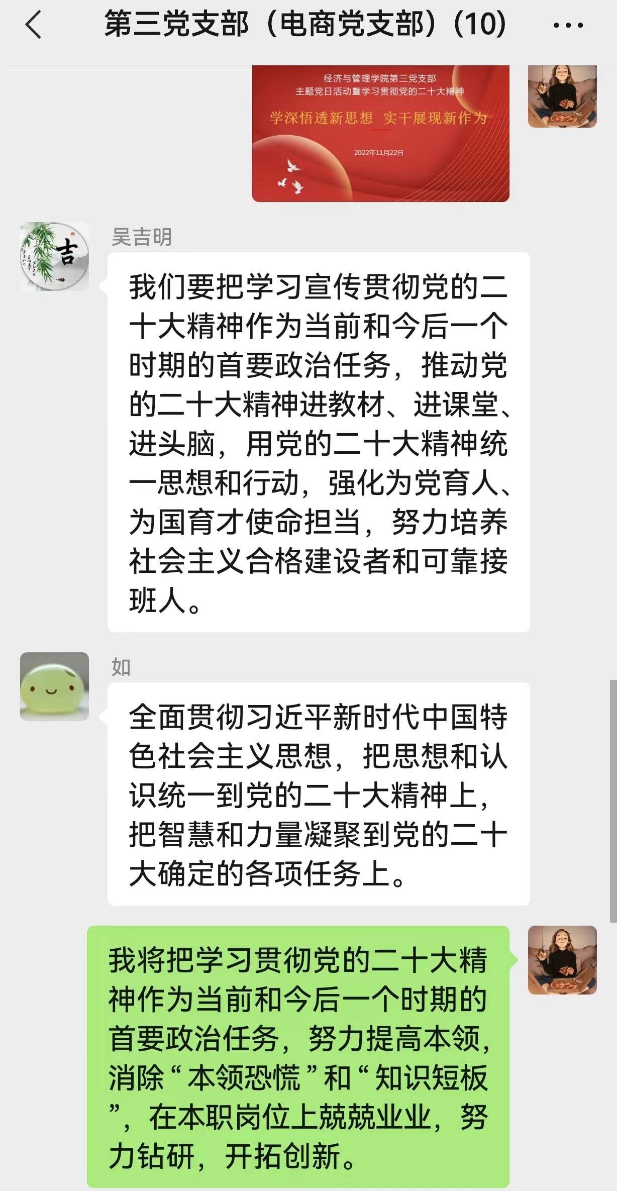 黨的二十大報告為我們的工作提供了根本遵循和行動指引,下一階段,支部黨員將認真學習貫徹落實黨的二十大精神,提高政治站位、提升履職能力,在學思踐悟中堅定信心、篤行實干,把學習成效轉化為推動學院各項工作高質量發(fā)展的新動能,高標準高質量完成學院各項工作任務。