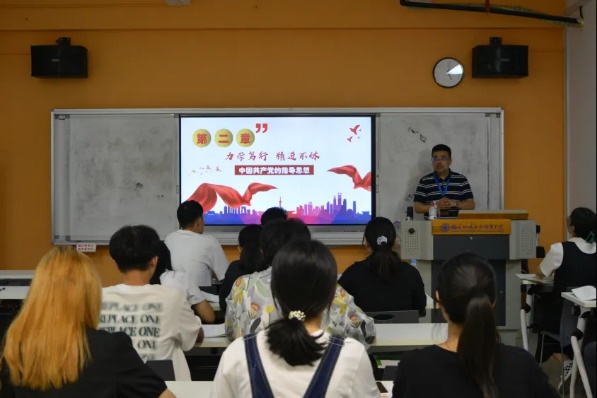 我院院長房曰榮向同學(xué)們介紹了中國共產(chǎn)黨的指導(dǎo)思想,黨的指導(dǎo)思想是指導(dǎo)中國共產(chǎn)黨全部活動的理論體系,主要包括:馬克思列寧主義、毛澤東思想、鄧小平理論 “三個代表”重要思想、科學(xué)發(fā)展觀、習(xí)近平新時代中國特色社會主義思想。黨的指導(dǎo)思想是黨對于整個社會歷史發(fā)展規(guī)律的基本認(rèn)識,是黨的全部理論觀點(diǎn),是黨的政治建設(shè)、思想建設(shè)、組織建設(shè)、作風(fēng)建設(shè)紀(jì)律建設(shè)和深入推進(jìn)反腐敗斗爭的理論基礎(chǔ),其重要性可見一斑。他希望同學(xué)們能認(rèn)真學(xué)習(xí)貫徹黨的指導(dǎo)思想,作為青年大學(xué)生要堅(jiān)持不懈用習(xí)近平新時代中國特色社會主義思想武裝頭腦、指導(dǎo)實(shí)踐、推動工作。