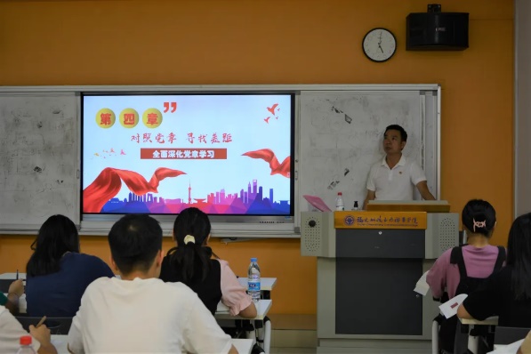 我院黨總支書記俞素平以“對照黨章,尋找差距”為題開展黨課培訓(xùn)。他強(qiáng)調(diào)黨章是黨的理想和宗旨的宣言書,也是黨員干事、創(chuàng)業(yè)、做人的基本遵循,深入學(xué)習(xí)黨章、理解黨章,嚴(yán)格按照黨章的規(guī)定辦事,是共產(chǎn)黨員保持先進(jìn)性的前提條件和根本保證,也是維護(hù)黨的團(tuán)結(jié)統(tǒng)一、完成黨的各項(xiàng)任務(wù)的堅(jiān)強(qiáng)保證。最后,他希望同學(xué)們在以后的學(xué)習(xí)生活中能夠始終以一名合格的共產(chǎn)黨員的標(biāo)準(zhǔn)來要求自己,真正將黨章內(nèi)化于心,外化于行,切實(shí)做到政治信仰不變、政治立場不變、政治方向不偏,永葆共產(chǎn)黨員的先進(jìn)性。