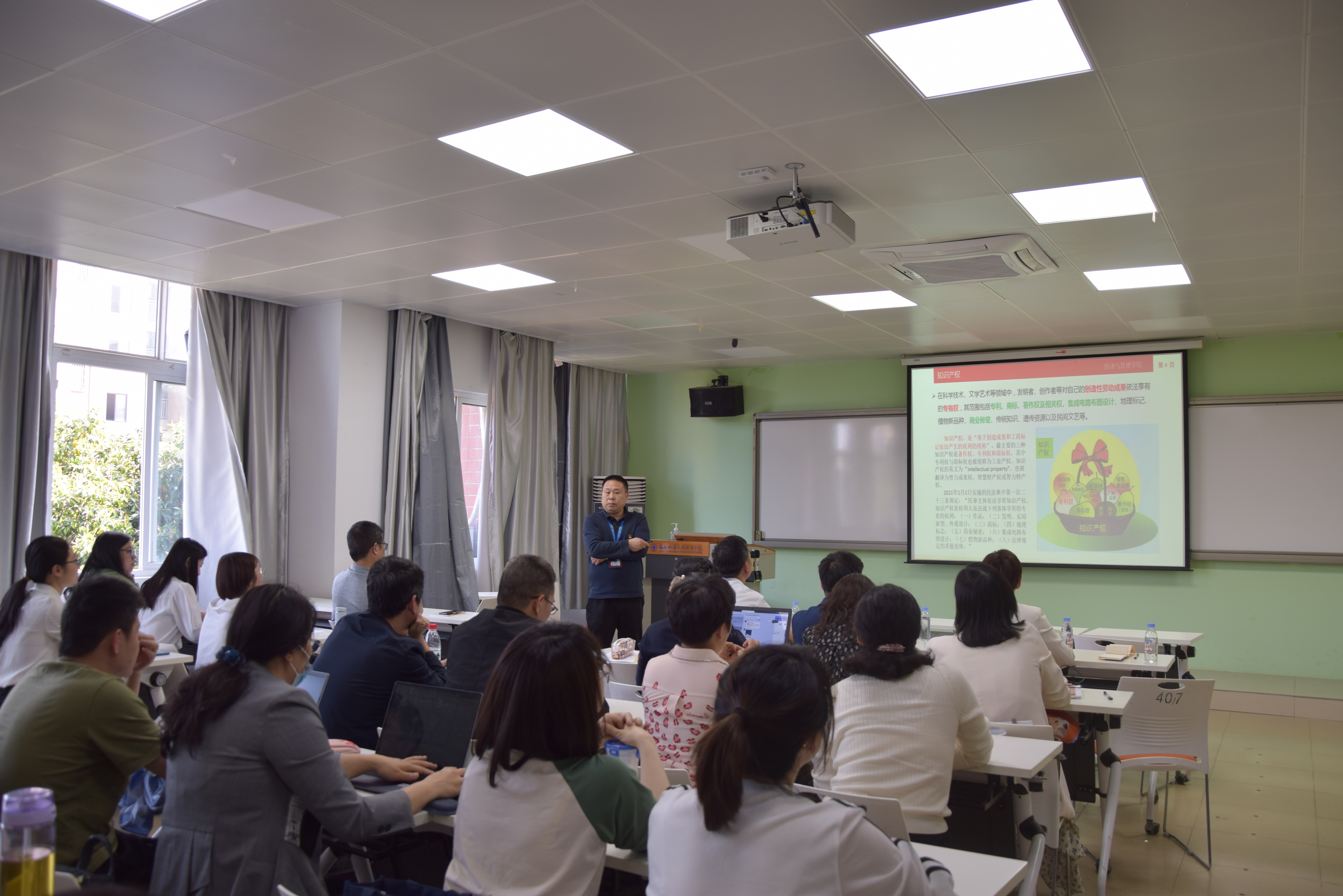 為了提高教職工的知識產(chǎn)權(quán)意識,提升科研誠信敏感度,抵制學(xué)術(shù)不端。副院長吳吉明以《知識產(chǎn)權(quán)保護(hù)與學(xué)術(shù)端正》為題,重點介紹了知識產(chǎn)權(quán)的概念和范疇以及相關(guān)法律法規(guī),介紹了學(xué)術(shù)不端的界定、典型案例及相關(guān)規(guī)定,進(jìn)一步引導(dǎo)廣大教師立德為先、誠信為本、操守為重、廉潔從教。