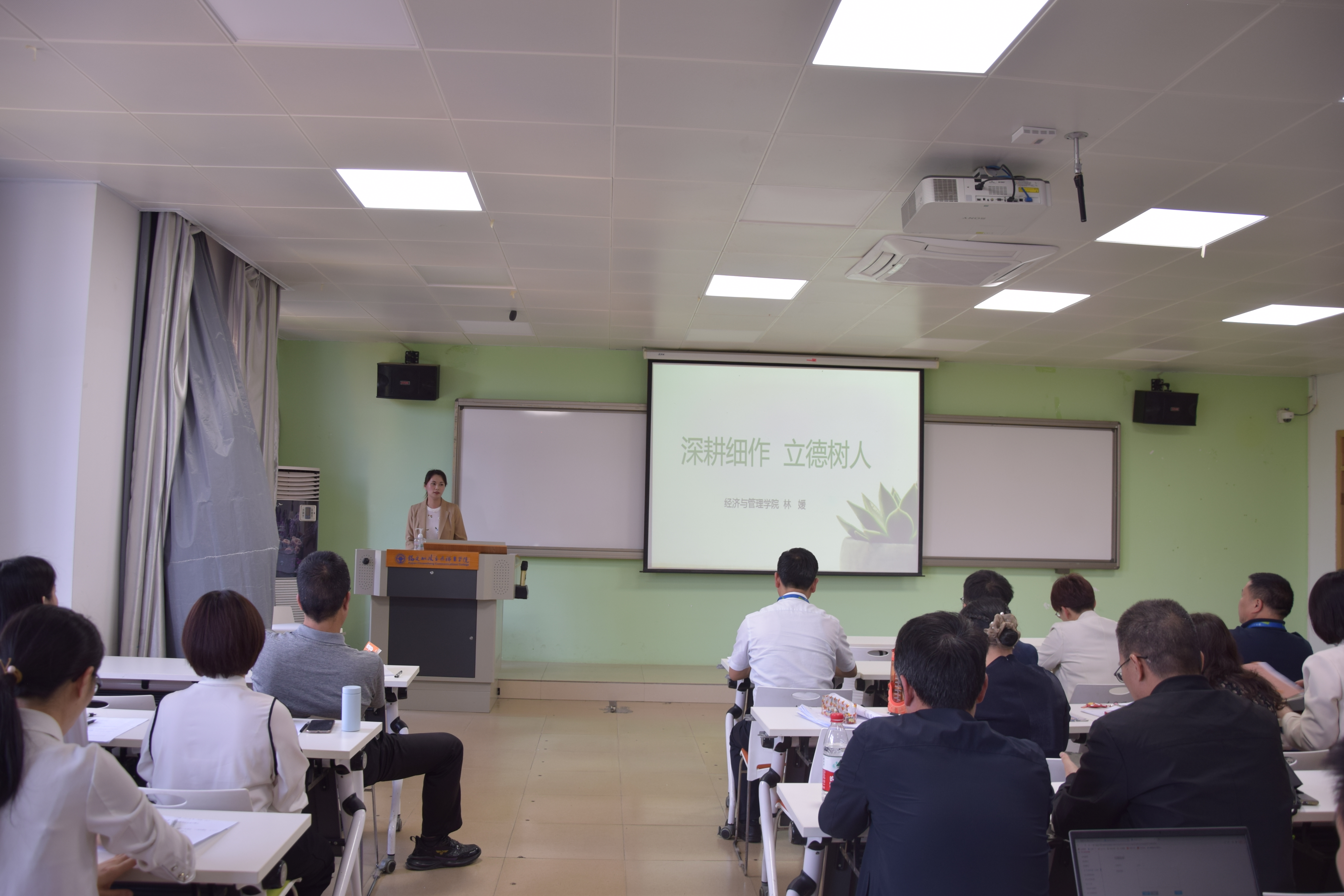 專題學(xué)習(xí)后,輔導(dǎo)員代表林媛、專任教師代表謝霓結(jié)合自身工作經(jīng)歷,分別以《深耕細(xì)作,立德樹人》《錘煉新時代師德師風(fēng),做溫暖有愛的老師》為題,以生動詳實的案例、通俗易懂的語言,分享了從教以來自己對師德的感悟,讓全體教職工體會到了師德并不是簡單地說教,而是一種精神的體現(xiàn),師德師風(fēng)也不是枯躁的理念和高舉的旗幟,它就體現(xiàn)在我們身邊,在我們的隊伍里。新時代教師應(yīng)該在三尺講臺上默默耕耘,嚴(yán)愛相濟(jì)、潤己澤人,以人格魅力呵護(hù)學(xué)生心靈,以學(xué)術(shù)造詣開啟學(xué)生智慧,讓每一個學(xué)生都健康成長。