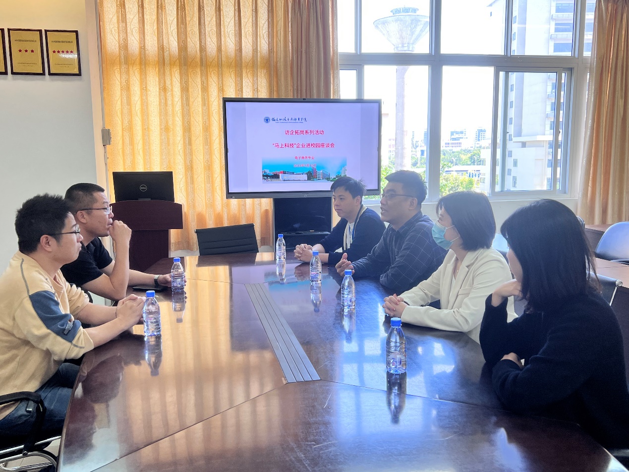 為深入開展學(xué)習(xí)貫徹習(xí)近平新時代中國特色社會主義思想主題教育,加快落實教育部“訪企拓崗促就業(yè)”專項行動新部署、新要求,深挖崗位資源,拓寬就業(yè)渠道,提升人才培養(yǎng)質(zhì)量和學(xué)生就業(yè)質(zhì)量,深化校企合作、推進產(chǎn)教研融合。2023年5月11日上午,邀請福州馬上網(wǎng)絡(luò)科技有限公司副總經(jīng)理趙喜一行到校交流座談。學(xué)院副院長林穎、電商教研室負責(zé)人陳樂天及部分骨干教師參加了交流座談會。