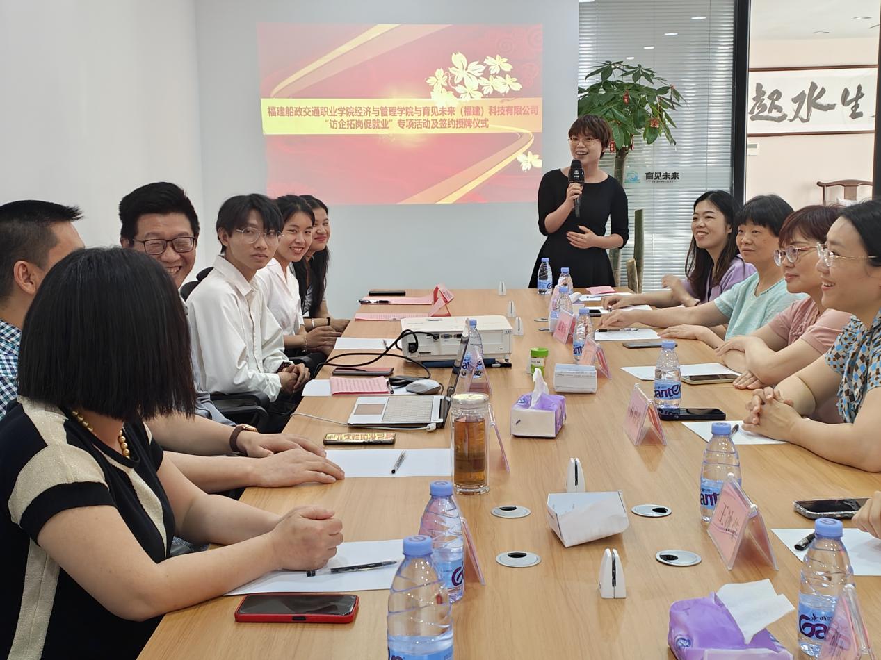 為深入貫徹落實(shí)黨中央、國務(wù)院關(guān)于高校畢業(yè)生就業(yè)工作的決策部署,進(jìn)一步落實(shí)訪企拓崗促就業(yè)專項(xiàng)行動(dòng)工作要求和學(xué)校相關(guān)文件精神。2023年5月18日,我院黨總支副書記林麗萍、大數(shù)據(jù)與會(huì)計(jì)教研室主任林潔瑩等教師前往浙江星嘉合信息管理有限公司和育見未來(福建)科技有限公司開展訪企拓崗促就業(yè)專項(xiàng)行動(dòng)。共同就行業(yè)發(fā)展、人才培養(yǎng)、人才需求等進(jìn)行了深入交流,為應(yīng)屆畢業(yè)生、實(shí)習(xí)生提供精準(zhǔn)就業(yè)實(shí)習(xí)指導(dǎo),開拓就業(yè)市場(chǎng),拓寬2023屆畢業(yè)生就業(yè)渠道。