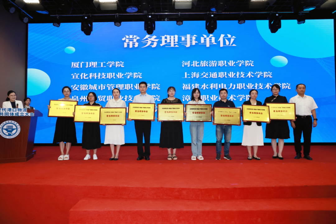 會(huì)上,對(duì)全國(guó)現(xiàn)代港口物流產(chǎn)教融合共同體指導(dǎo)單位、福建船政交通職業(yè)學(xué)院等5家輪值理事長(zhǎng)單位、福建八方物流股份有限公司等10家副理事長(zhǎng)單位、上海交通職業(yè)技術(shù)學(xué)院等20家常務(wù)理事單位、福州理工學(xué)院等36家理事單位進(jìn)行授牌。