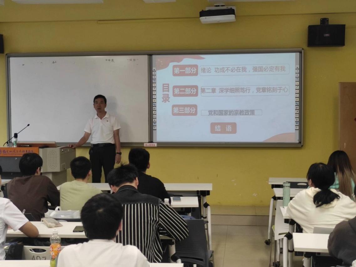 我院黨總支書記俞素平以“功成不必在我,強(qiáng)國必定有我”為切入點(diǎn),強(qiáng)調(diào)黨章是規(guī)范和指導(dǎo)全黨行為的總章程,同學(xué)們要認(rèn)真學(xué)習(xí)并踐行新黨章,要時(shí)時(shí)以黨章為遵循,深學(xué)細(xì)研其中所蘊(yùn)含的立場觀點(diǎn),多照一照自我,多量一量自身。最后,俞書記希望同學(xué)們要時(shí)刻保持清醒的頭腦,加強(qiáng)思想武裝,正確認(rèn)識(shí)宗教,崇尚科學(xué),為實(shí)現(xiàn)中華民族偉大復(fù)興的中國夢貢獻(xiàn)力量。