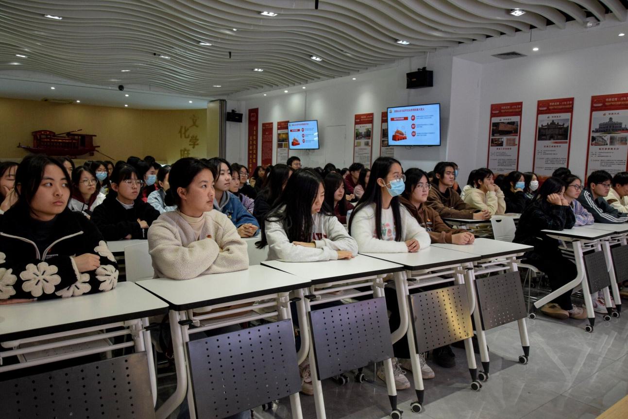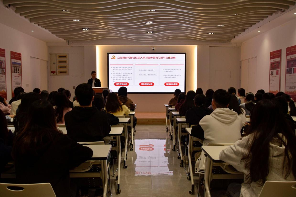 為深入學(xué)習(xí)貫徹黨的二十大精神,推進學(xué)習(xí)貫徹習(xí)近平新時代中國特色社會主義思想主題教育走深走實,1213日,經(jīng)濟與管理學(xué)院黨總支書記俞素平以《深入學(xué)習(xí)貫徹習(xí)近平文化思想 培育和踐行社會主義核心價值觀》為題,在黨建館開展形勢與政策宣講。經(jīng)濟與管理學(xué)院2022級第三批入黨積極分子參加了此次宣講會。
