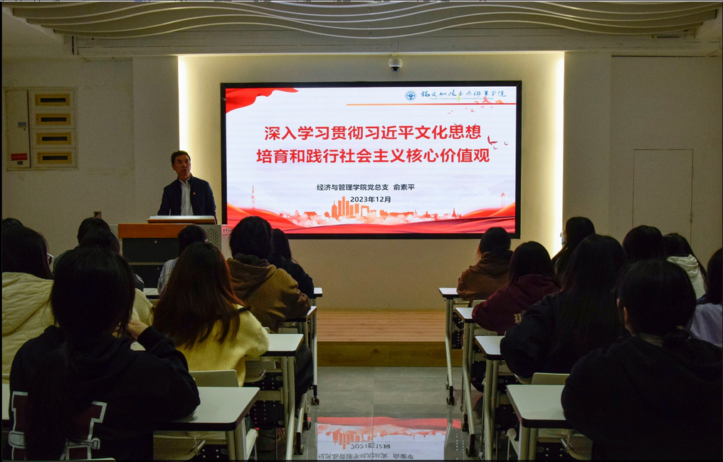 聽書記上形勢與政策課——經(jīng)濟與管理學(xué)院開展《深入學(xué)習(xí)貫徹習(xí)近平文化思想 培育和踐行社會主義核心價值觀》宣講