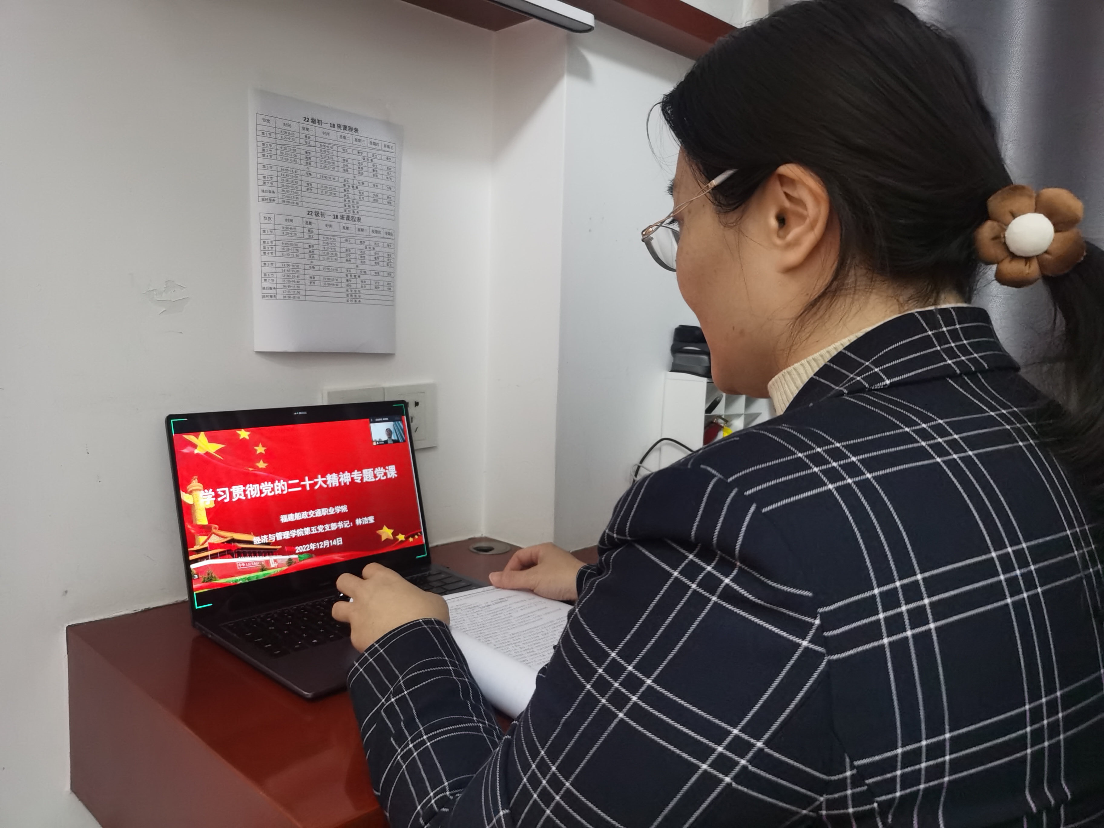 為深入學(xué)習(xí)貫徹黨的二十大精神, 12月14日,經(jīng)濟(jì)與管理學(xué)院第五黨支部書記林潔瑩以《學(xué)習(xí)貫徹黨的二十大精神》為題,通過“支部書記上黨課”的形式進(jìn)行黨的二十大精神專題宣講,第五黨支部全體黨員教師通過線上形式參加此次會(huì)議。