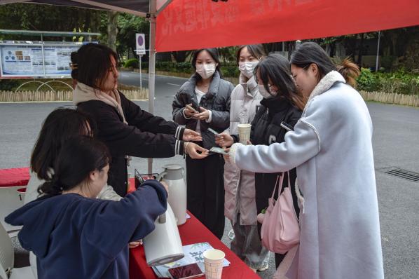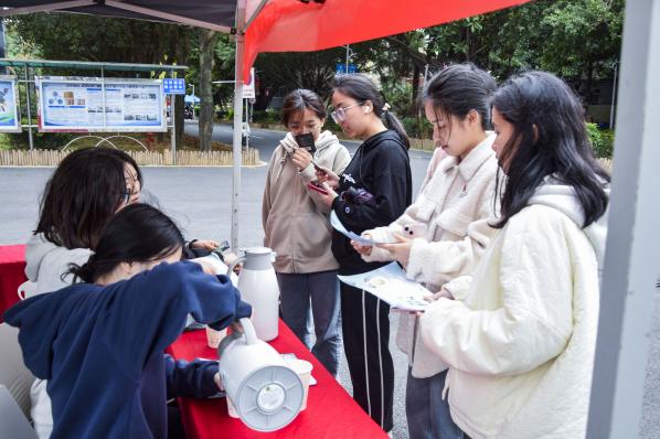 活動(dòng)伊始,實(shí)踐團(tuán)成員向現(xiàn)場(chǎng)駐足的同學(xué)們發(fā)放宣傳單、分送茶包,介紹福州茉莉花茶的文化背景、茶葉產(chǎn)業(yè)的發(fā)展現(xiàn)狀和制作工藝,讓同學(xué)們感受到福州茉莉花茶背后的文化底蘊(yùn),并思考如何傳承和創(chuàng)新這一傳統(tǒng)文化,提升同學(xué)們的文化素養(yǎng)。