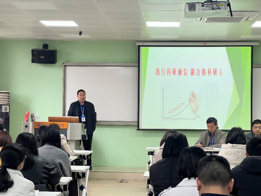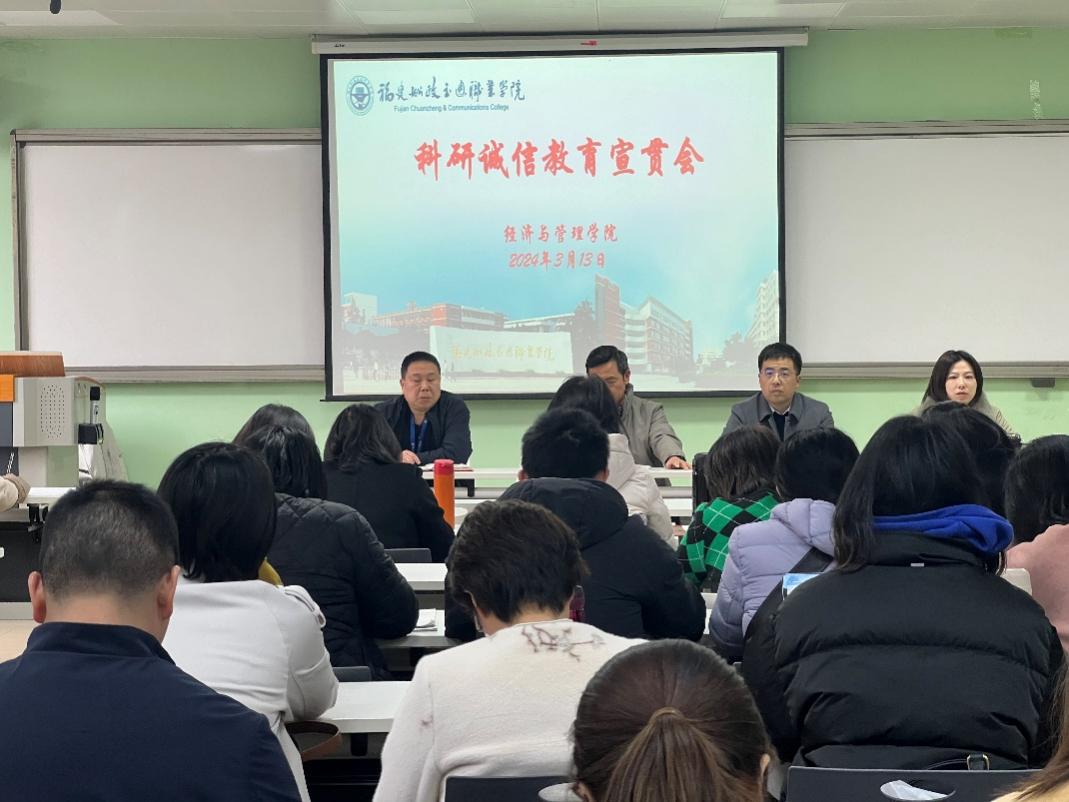 科研誠信是學(xué)術(shù)發(fā)展的基石,是科學(xué)創(chuàng)新的根本。習(xí)近平總書記強調(diào),要營造良好學(xué)術(shù)環(huán)境,弘揚學(xué)術(shù)道德和科研倫理。科技創(chuàng)新是國家發(fā)展形勢所需、大勢所趨。加強科研誠信建設(shè),對營造良好的學(xué)術(shù)環(huán)境,引導(dǎo)科研人員堅守學(xué)術(shù)誠信、維護學(xué)術(shù)尊嚴具有重要意義。為此,經(jīng)濟與管理學(xué)院于2024年3月12日在求實樓407教室開展了“科研誠信”教育宣貫會。本次會議以講座形式開展,吳吉明副院長做“踐行科研誠信 做合格科研人”的報告,經(jīng)濟與管理學(xué)院全體教師參加了本次會議。