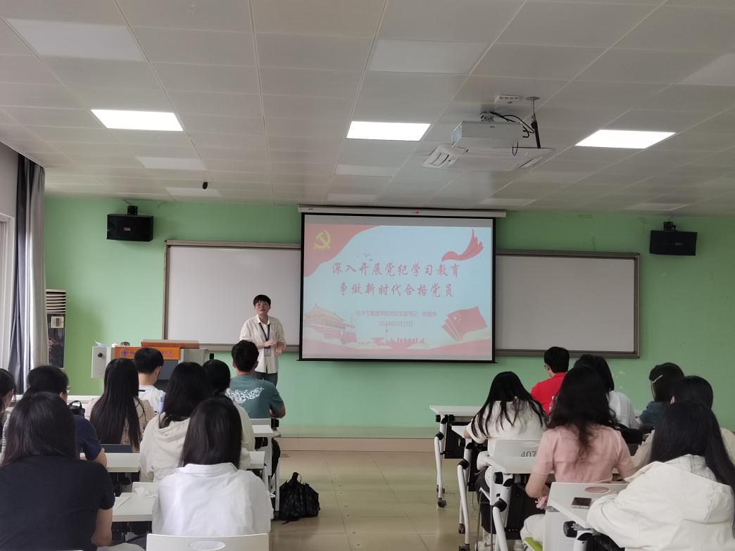 為進一步推動黨紀(jì)學(xué)習(xí)教育走深走實,加強畢業(yè)生黨員離校教育,引導(dǎo)畢業(yè)生黨員在學(xué)思踐悟中堅定理想信念,在實干擔(dān)當(dāng)中錘煉黨性修養(yǎng)。5月23日,經(jīng)濟與管理學(xué)院第一黨支部書記林麗萍以《深入開展黨紀(jì)學(xué)習(xí)教育 爭做新時代合格黨員》為題,在求實樓407教室為支部全體黨員上了一堂精彩的黨課。