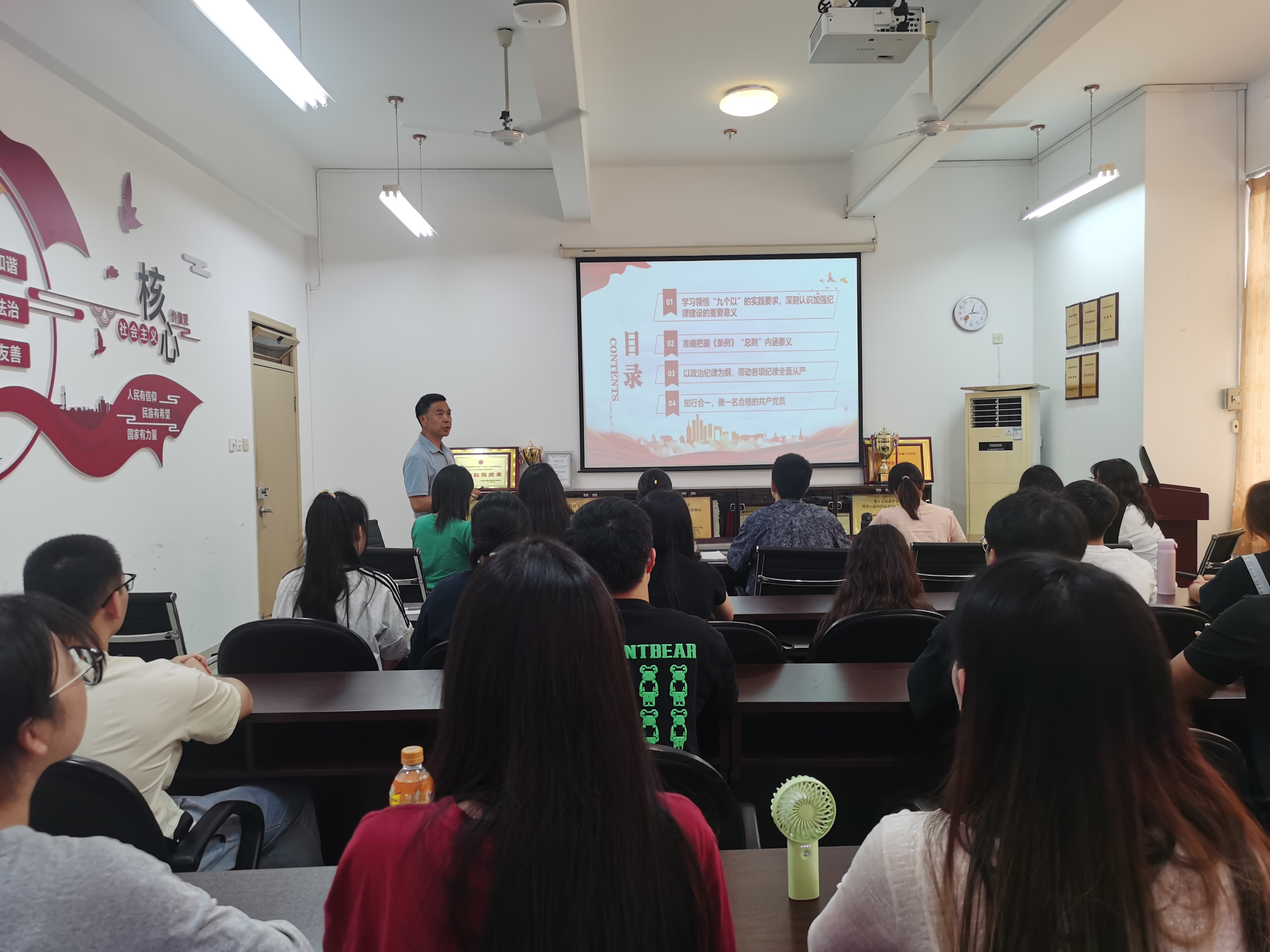 為深入貫徹落實(shí)習(xí)近平總書記關(guān)于黨紀(jì)學(xué)習(xí)教育的重要講話和重要指示精神,進(jìn)一步加強(qiáng)黨員師生紀(jì)律意識(shí),教育引導(dǎo)黨員師生學(xué)紀(jì)、知紀(jì)、明紀(jì)、守紀(jì),推動(dòng)黨紀(jì)學(xué)習(xí)教育走深走實(shí),2024年6月14日,經(jīng)濟(jì)與管理學(xué)院黨總支書記俞素平以《嚴(yán)守黨的紀(jì)律做一名合格的共產(chǎn)黨員》為題,為黨員師生講授黨紀(jì)學(xué)習(xí)教育專題黨課,并就所思所獲與黨員們作了分享交流。經(jīng)濟(jì)與管理學(xué)院第二黨支部黨員師生參加了此次黨課。