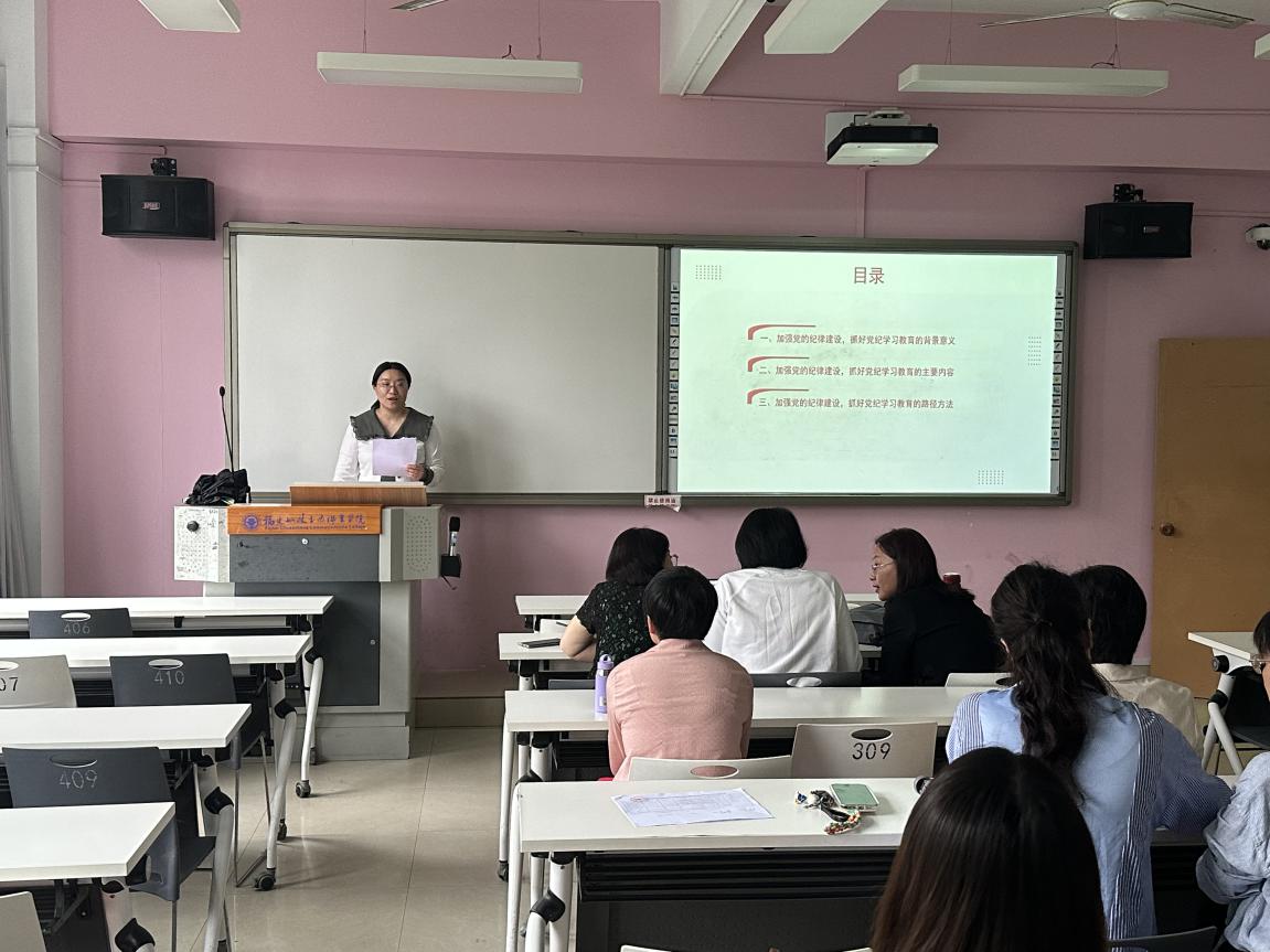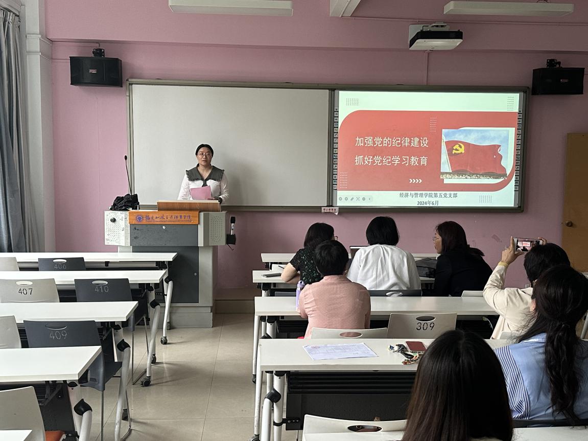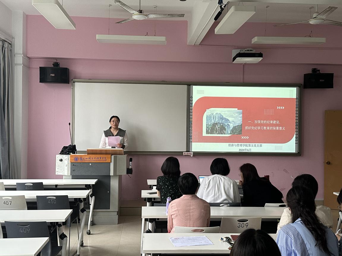 為深入開展黨紀(jì)學(xué)習(xí)教育,引導(dǎo)黨員教師學(xué)紀(jì)、知紀(jì)、明紀(jì)、守紀(jì),進(jìn)一步推動黨紀(jì)學(xué)習(xí)教育走深走實(shí),2024年6月5日,經(jīng)濟(jì)與管理學(xué)院第五黨支部舉辦“加強(qiáng)黨的紀(jì)律建設(shè)、抓好黨紀(jì)學(xué)習(xí)教育”專題黨課。本次黨課由支部書記林潔瑩授課,支部全體黨員參加了此次黨課。