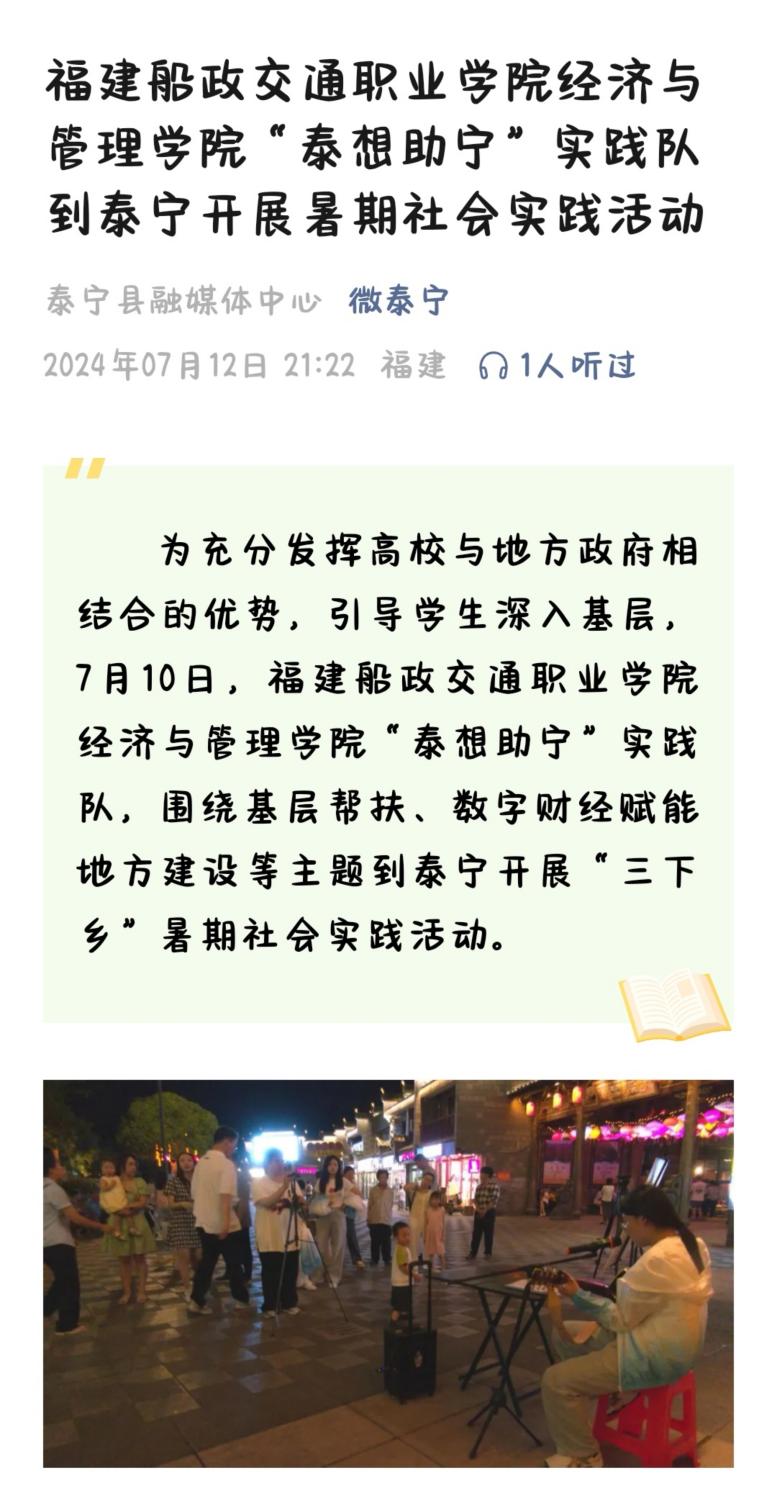 標(biāo)題:福建船政交通職業(yè)學(xué)院經(jīng)濟(jì)與管理學(xué)院“泰想助寧”實(shí)踐隊(duì)到泰寧開(kāi)展暑期社會(huì)實(shí)踐活動(dòng)