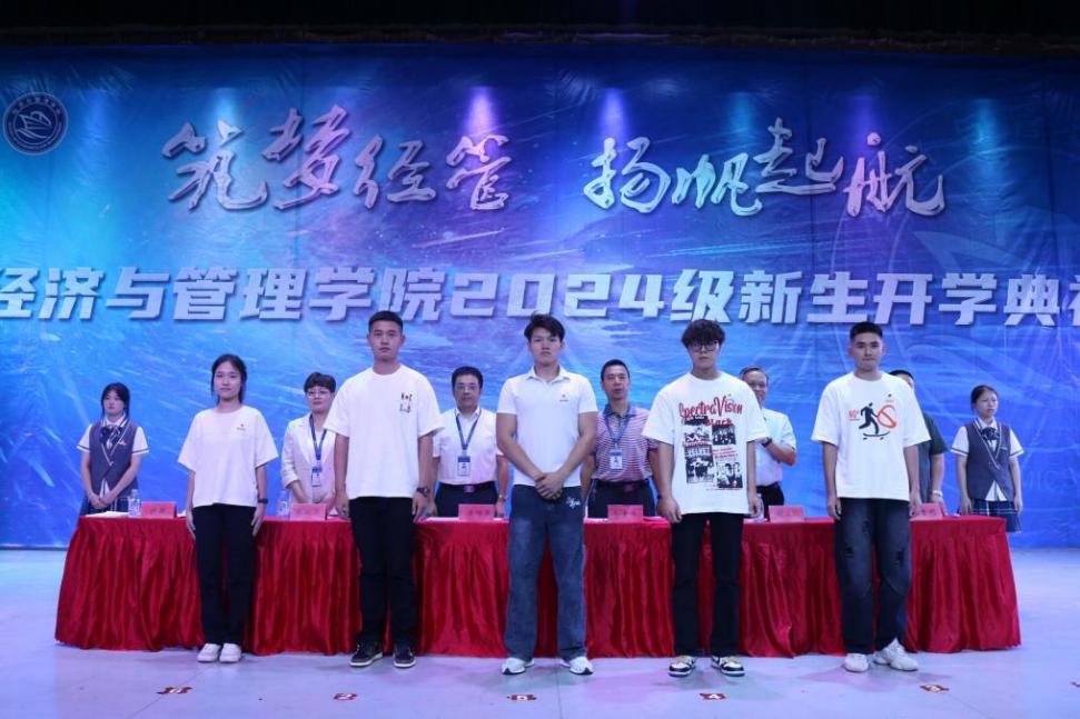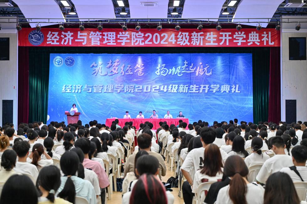 年華正茂啟新篇,矢志前行筑夢(mèng)圓。2024年9月25日,經(jīng)濟(jì)與管理學(xué)院2024級(jí)新生開學(xué)典禮在文體中心隆重舉行。經(jīng)濟(jì)與管理學(xué)院黨總支書記俞素平,院長(zhǎng)房曰榮,廈門市海滄區(qū)職業(yè)中專學(xué)校副校長(zhǎng)謝文輝,經(jīng)濟(jì)與管理學(xué)院黨總支副書記林麗萍,副院長(zhǎng)吳吉明、林穎,團(tuán)委書記傅一丹等領(lǐng)導(dǎo)出席典禮,經(jīng)濟(jì)與管理學(xué)院各教研室主任,廈門市海滄區(qū)職業(yè)中專學(xué)校教師,2024級(jí)新生輔導(dǎo)員、班主任及全體新生、助導(dǎo)到場(chǎng)參加。典禮由副院長(zhǎng)林穎主持。